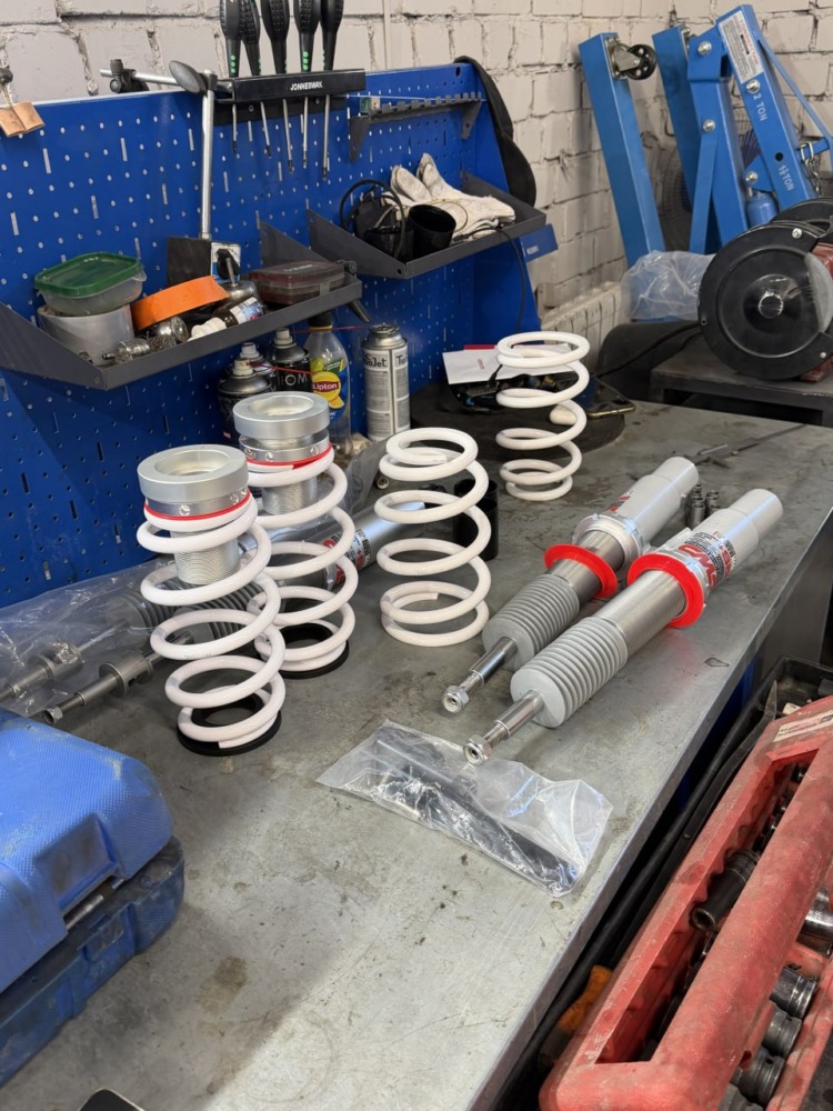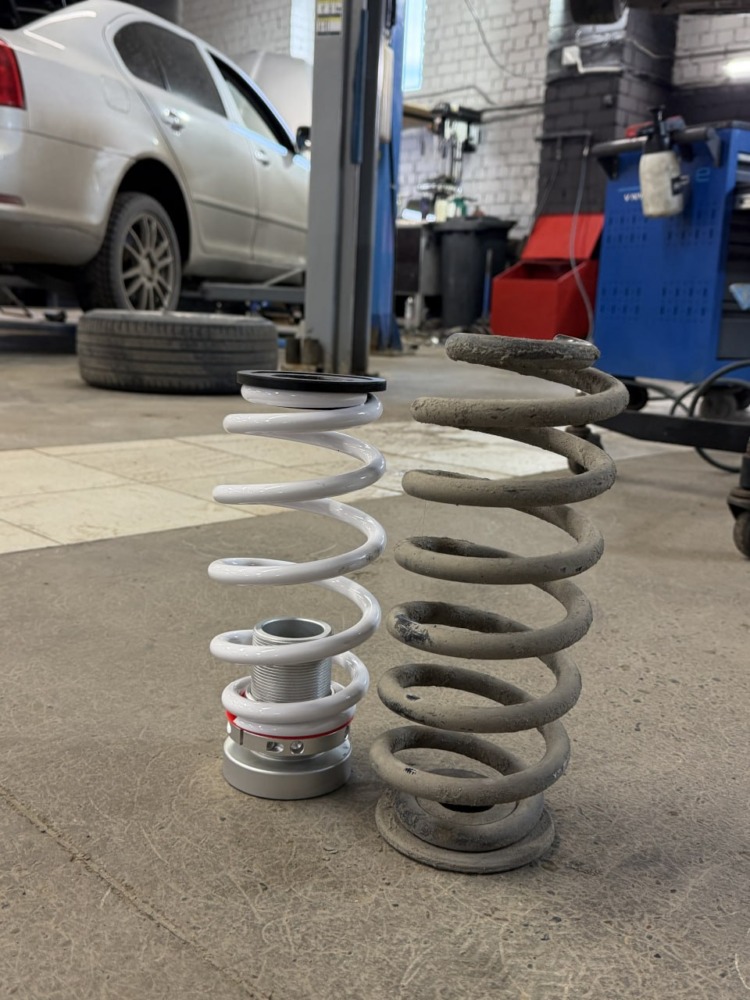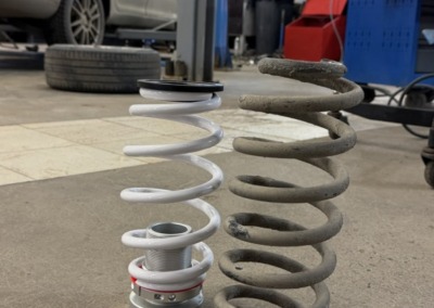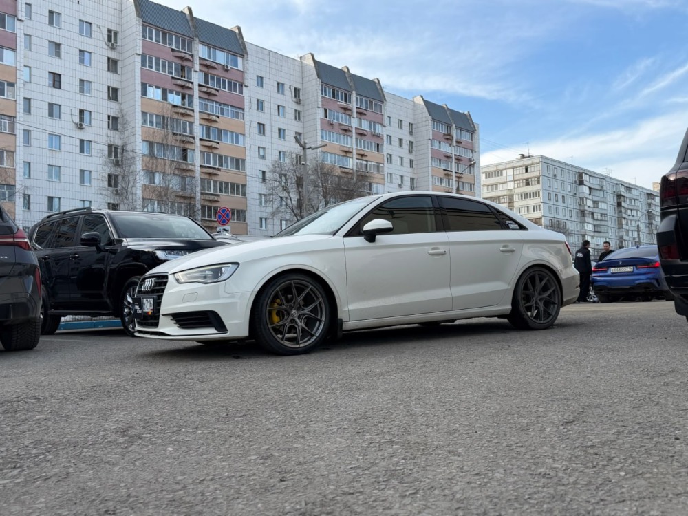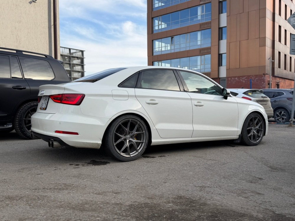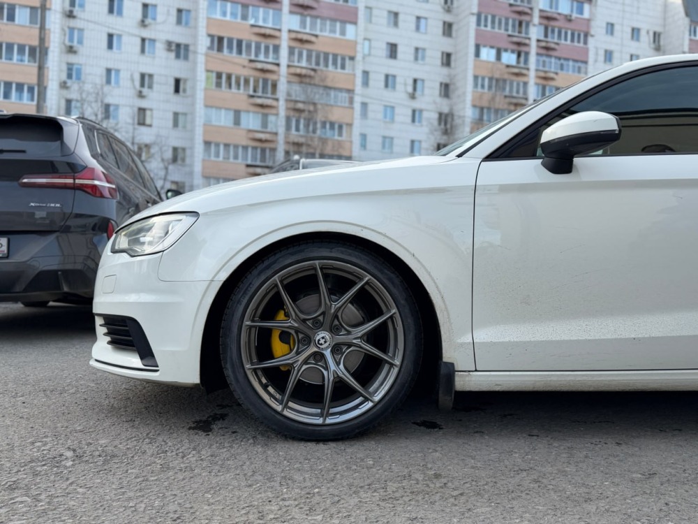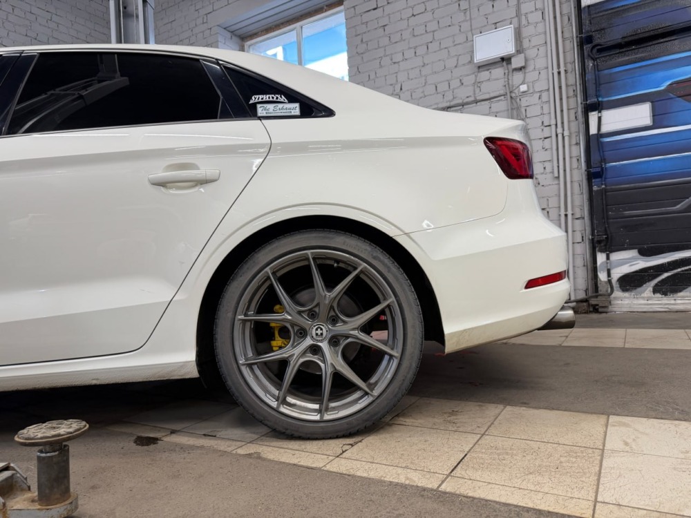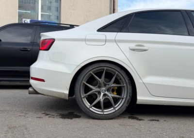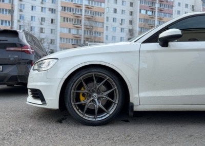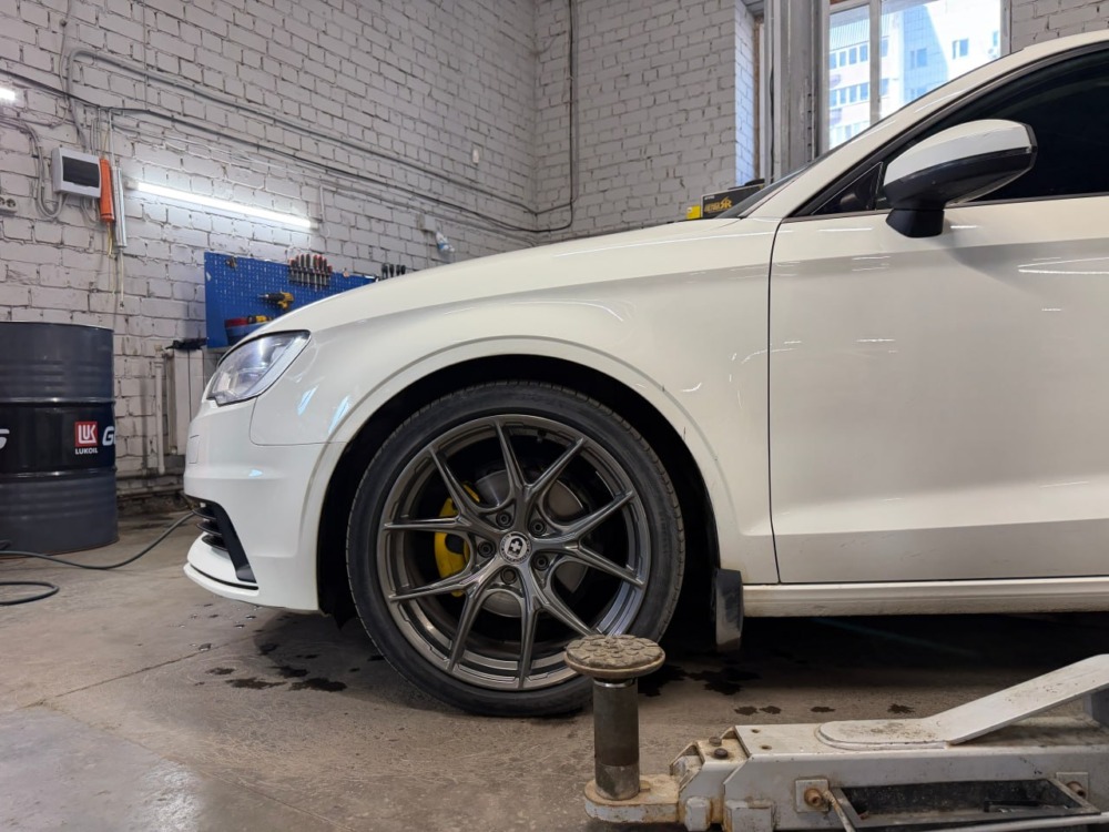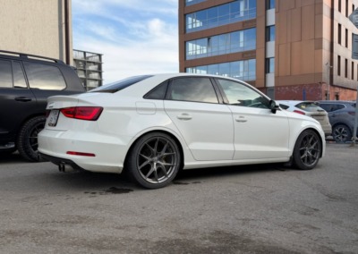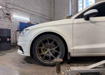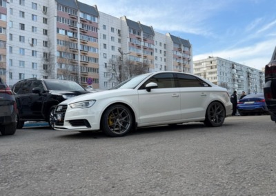 На Audi A3 было выполнено занижение с установкой регулируемых койловеров. Клиент привез их сам, но вы всегда можете заказать запчасти у нас.