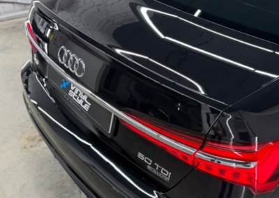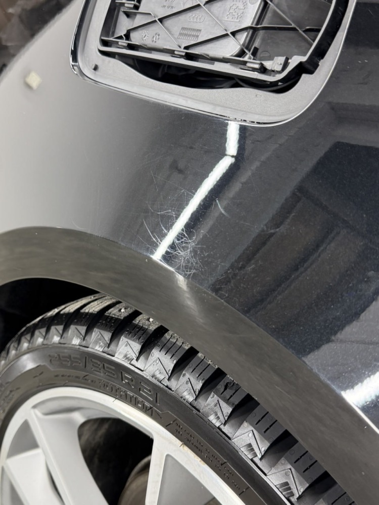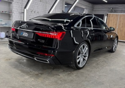 Глядя на состояние кузова, трудно поверить, что это Audi A6 в кузове C8, который, казалось бы, только недавно вышел. Наша задача — реанимировать автомобиль полировкой и покрасить задний бампер.