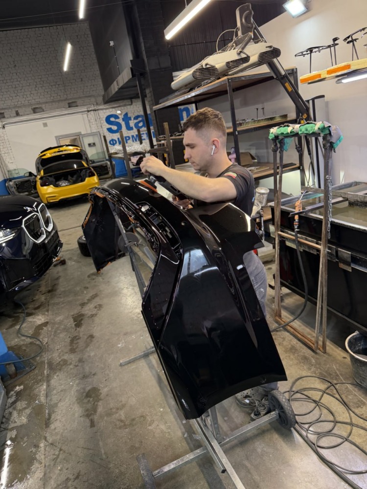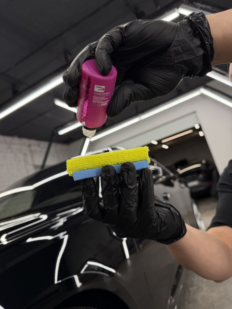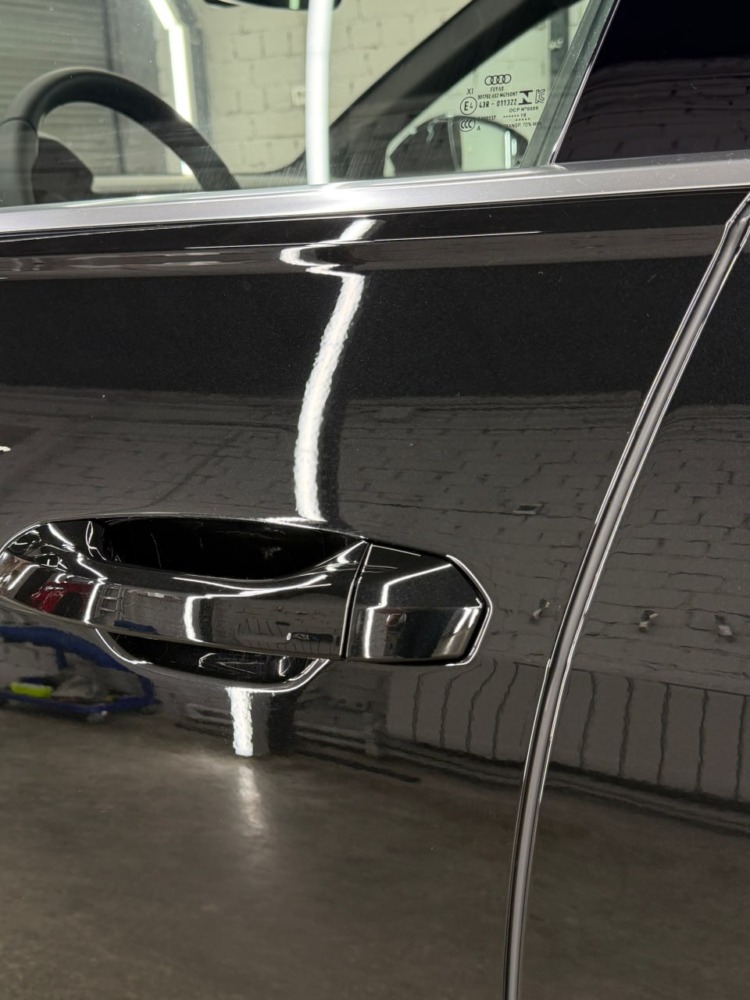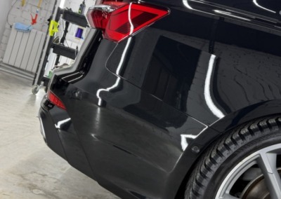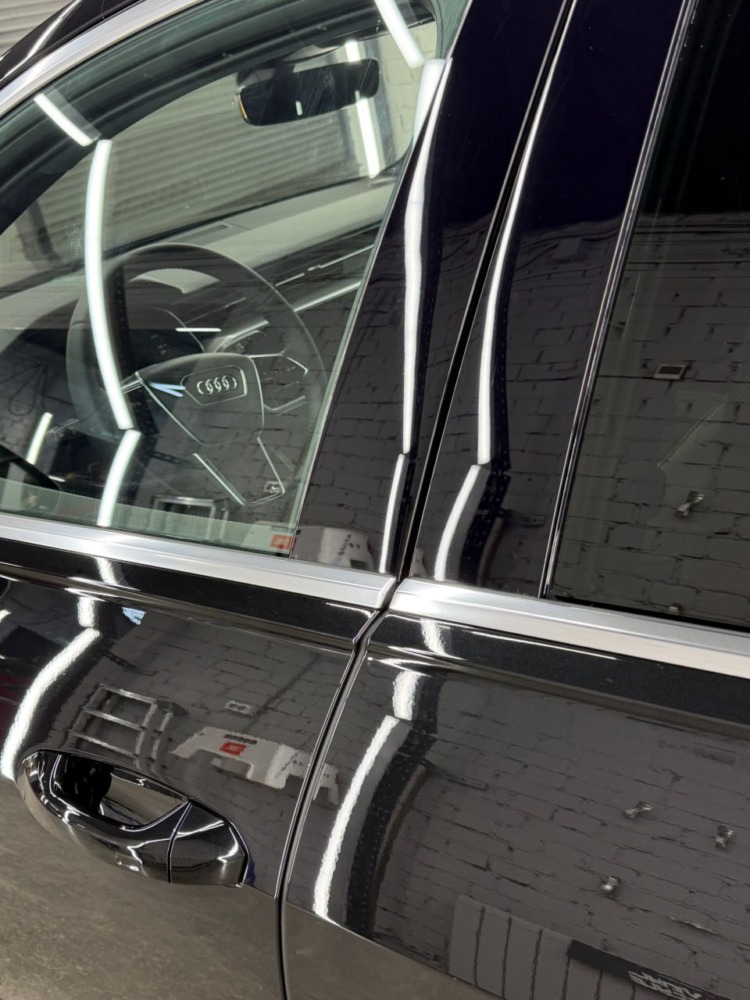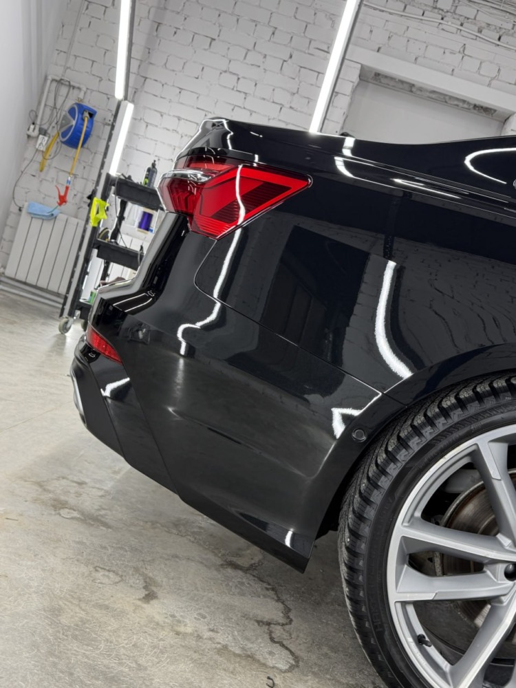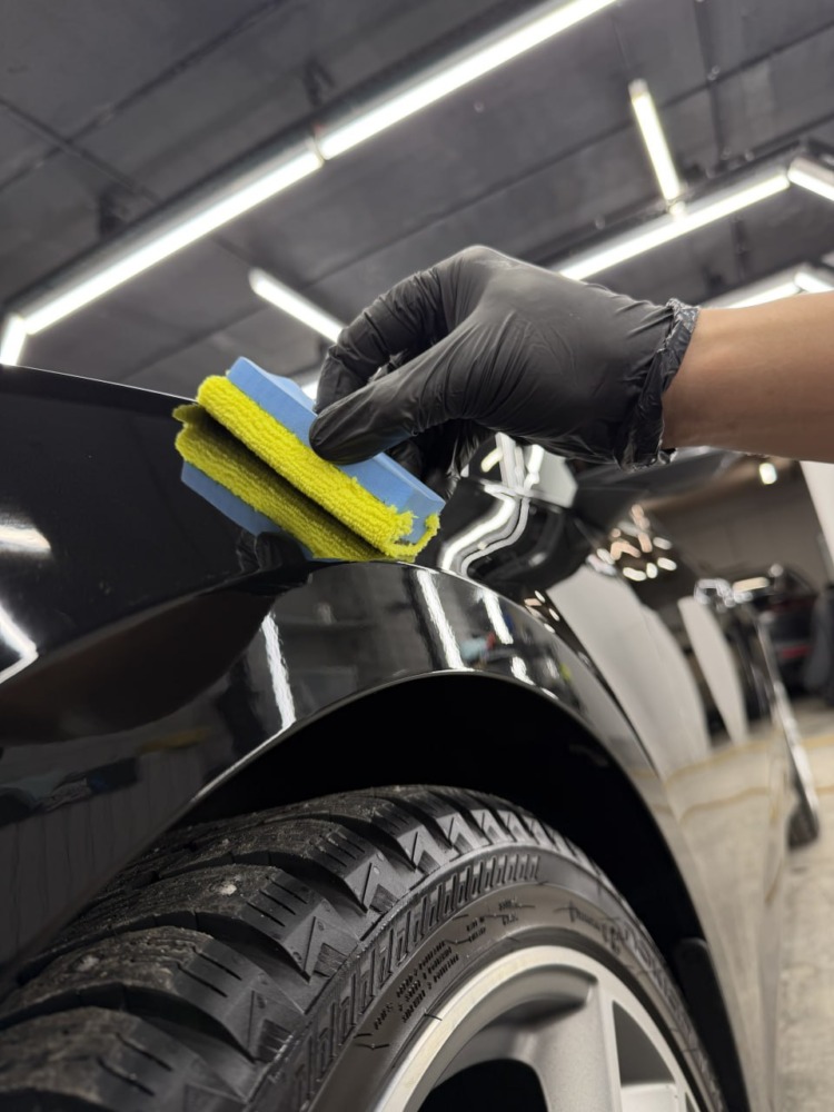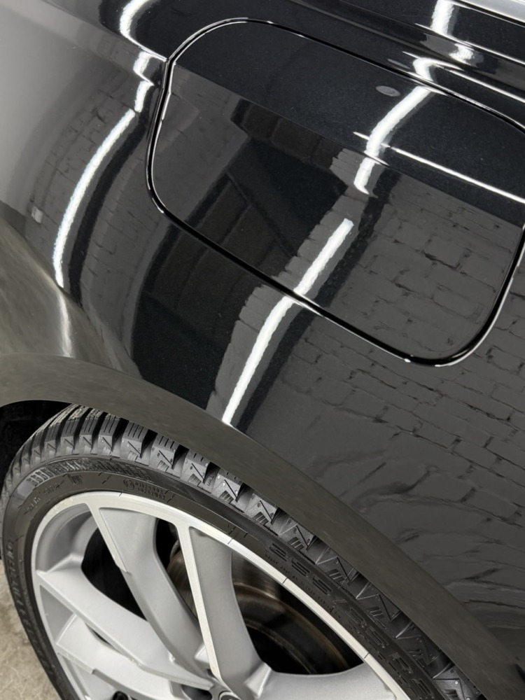 После выполненных работ нанесли керамическое покрытие, и результат впечатляет: автомобиль выглядит, как новый, а черный цвет действительно глубокий и насыщенный.