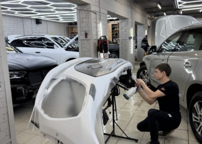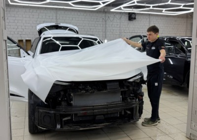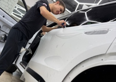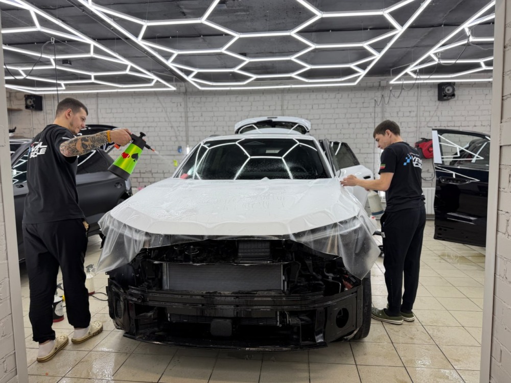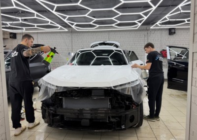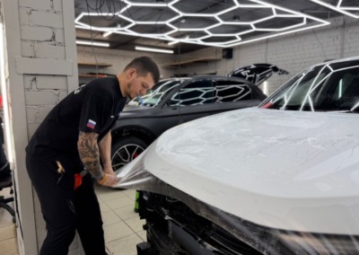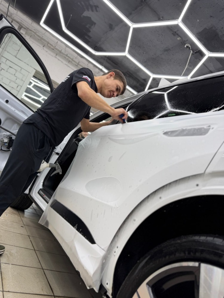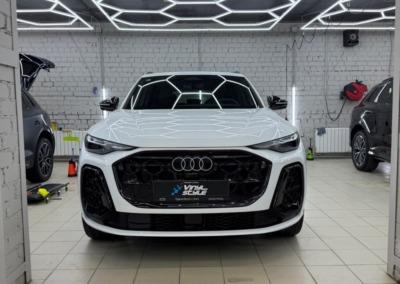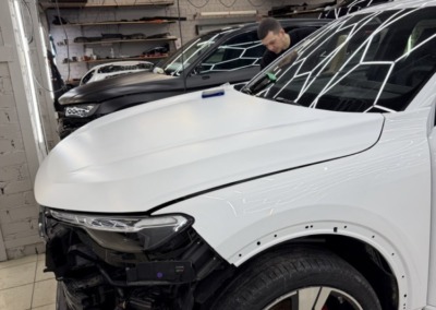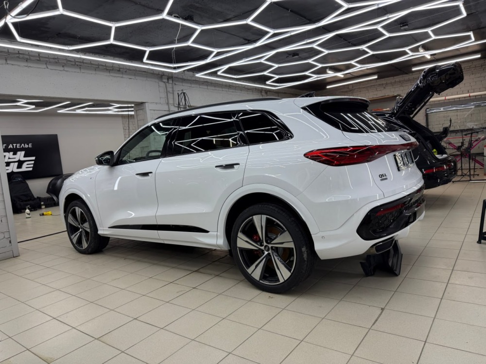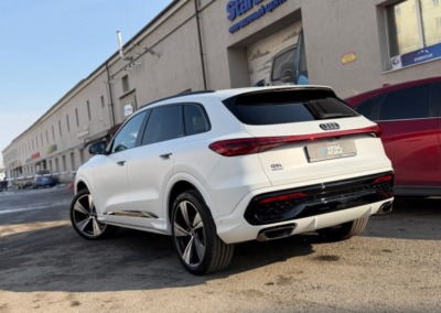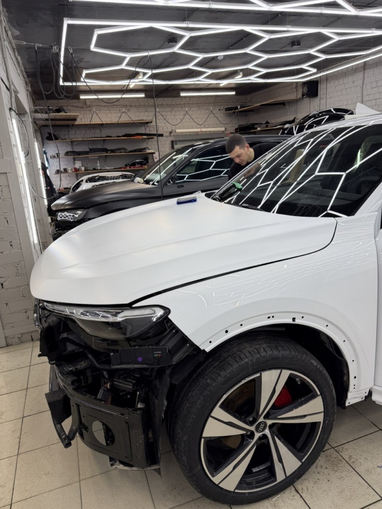 Одновременно в работе было три Audi Q5 и все на оклейку в матовый полиуретан. Отличный выбор владельцев! На белом кузове дополнительно: