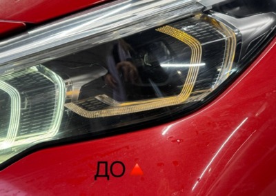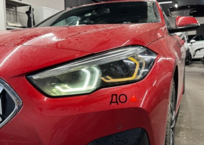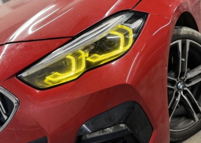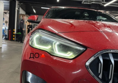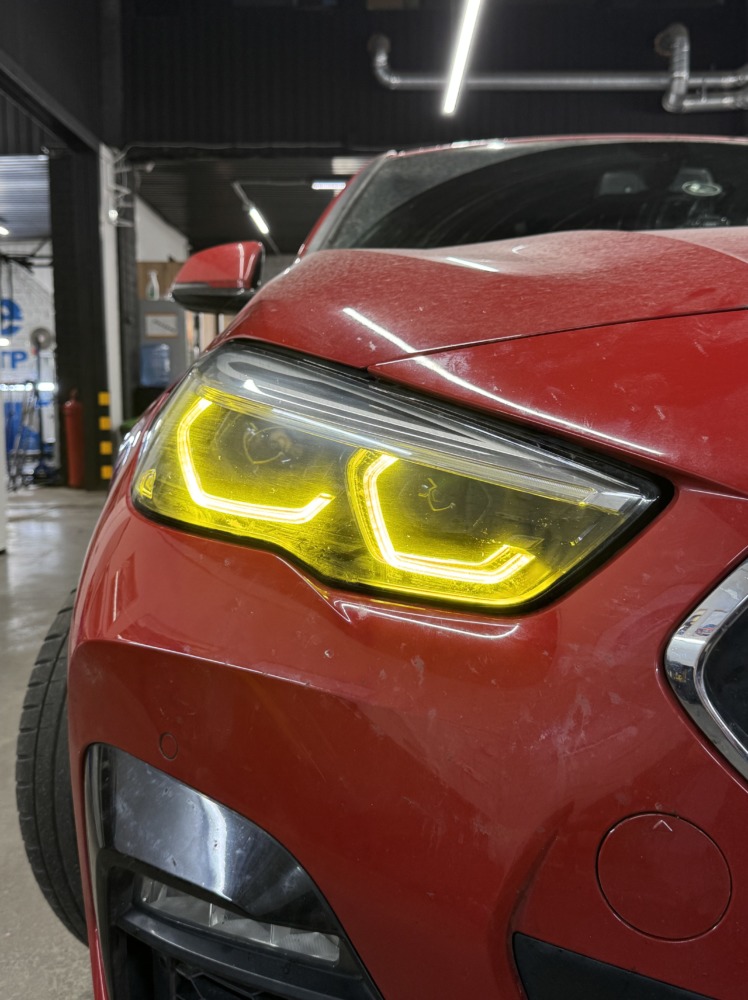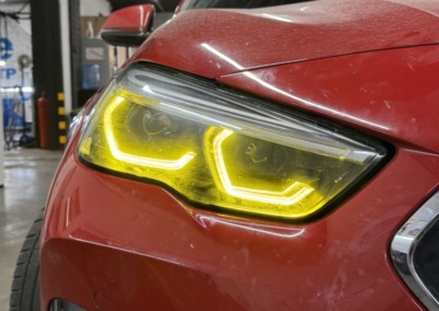 Клиент обратился с проблемой типичной для бмв — подгорание световода ангельских глазок. Мы устранили выгоревшее место, но так как он создавал желтый оттенок в штатном варианте подсветки глазок, доступным решением для клиента стал пересвет маркеров на лимонный в стиле cs версий. Тем самым мы добились одинакового равномерного свечения всех глазок без замены самого световода.