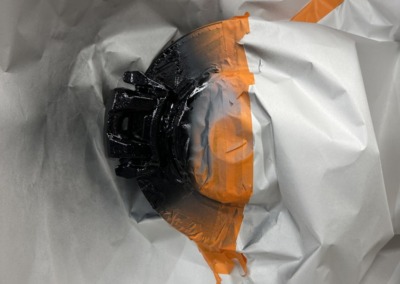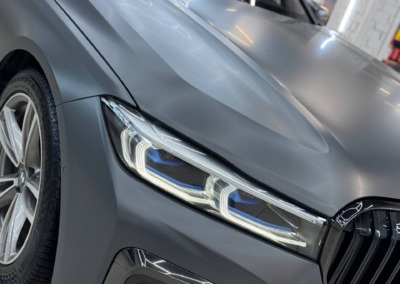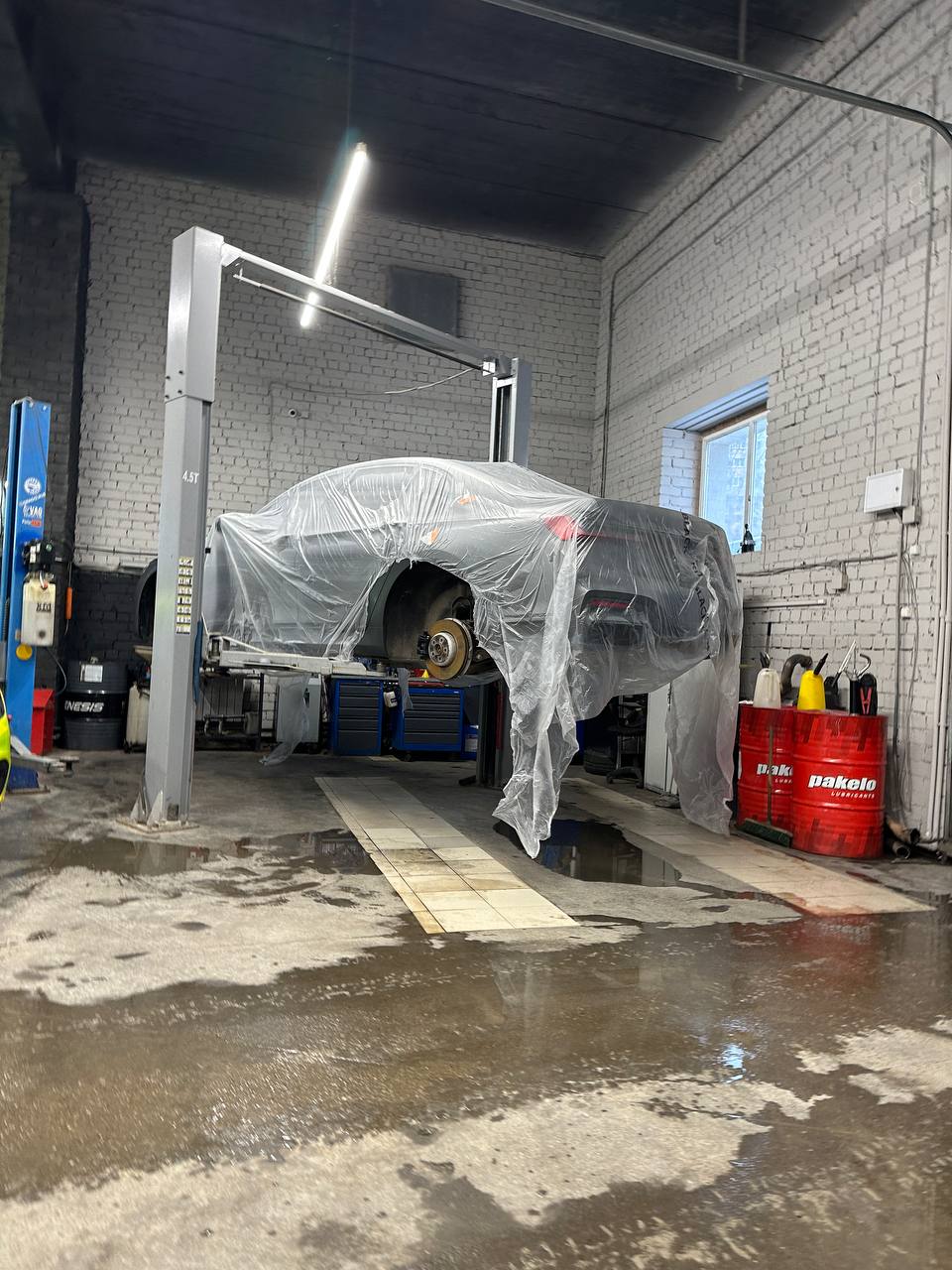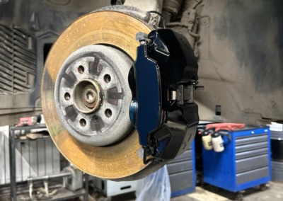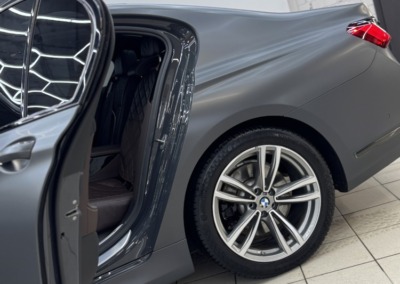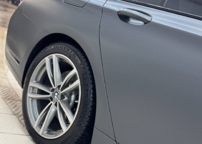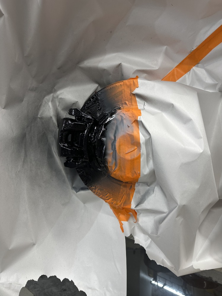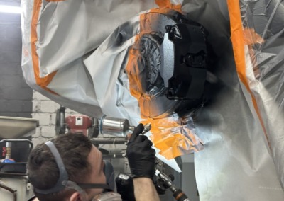 Первым делом мы оклеили кузов сатиновой полиуретановой плёнкой и покрасили тормозные суппорты в чёрный глянец.