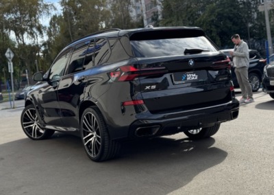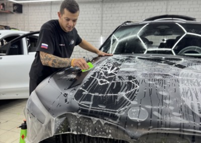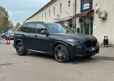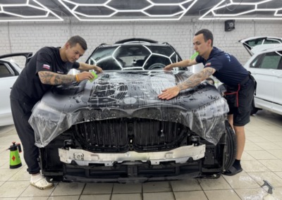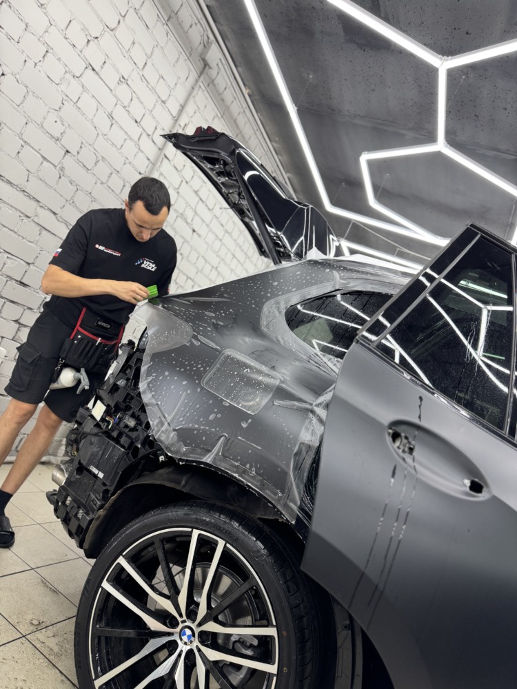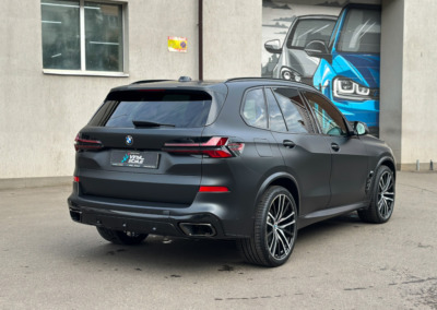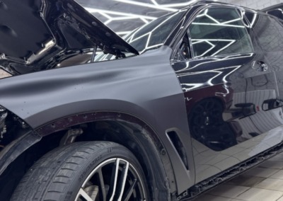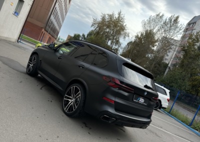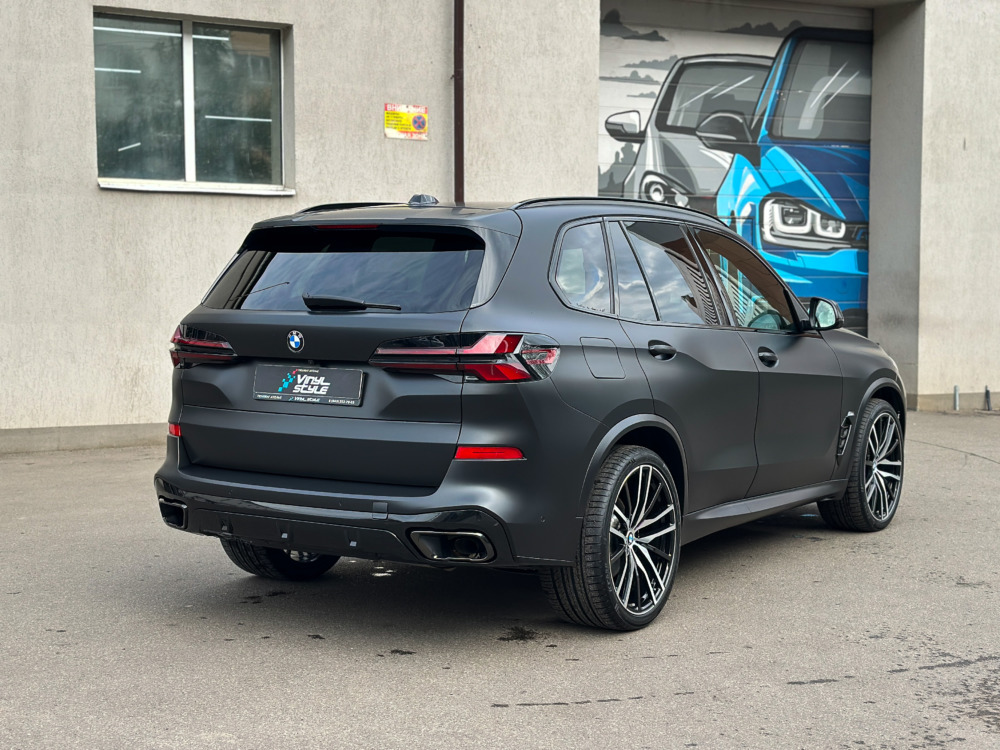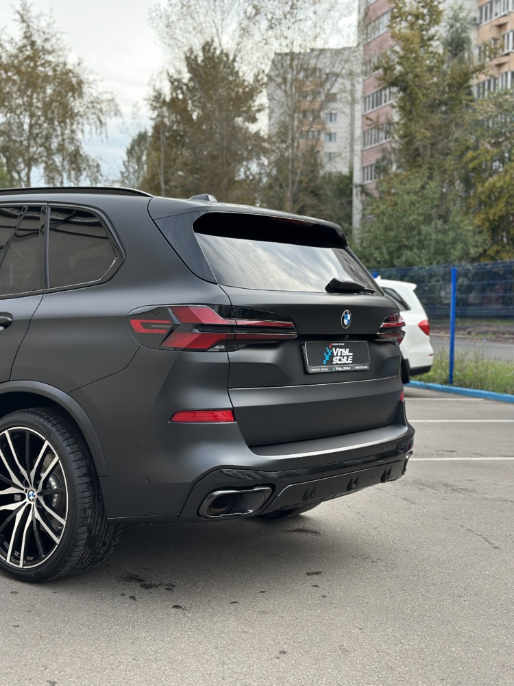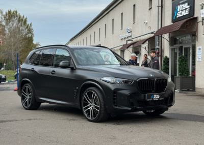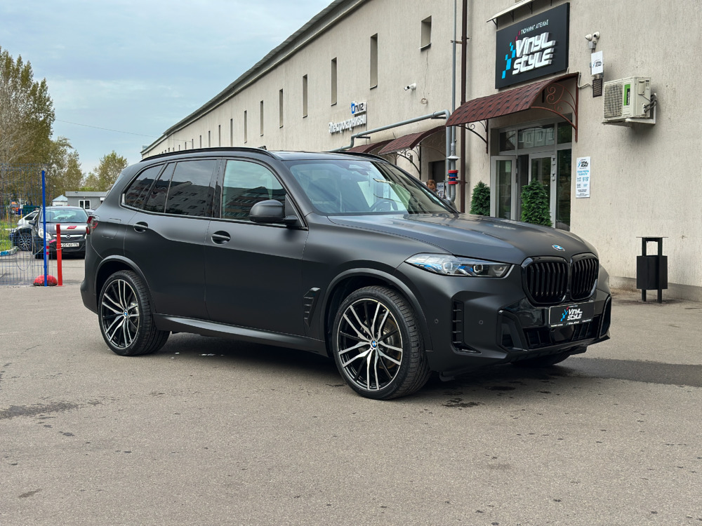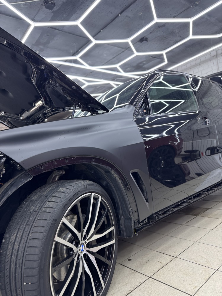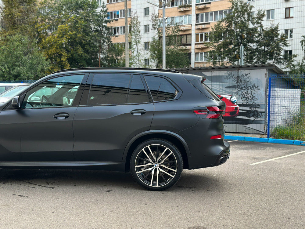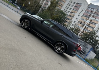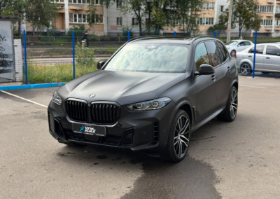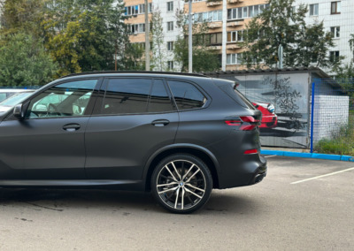 BMW X5 — бронирование кузова матовой полиуретановой пленкой Лучшее решение для чёрного BMW X5 — это оклейка кузова в матовый полиуретан. Автомобиль смотрится строго, дерзко, при этом защищён от механических повреждений.