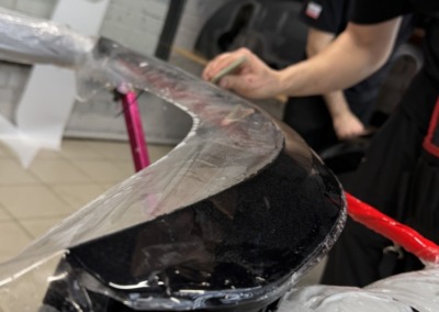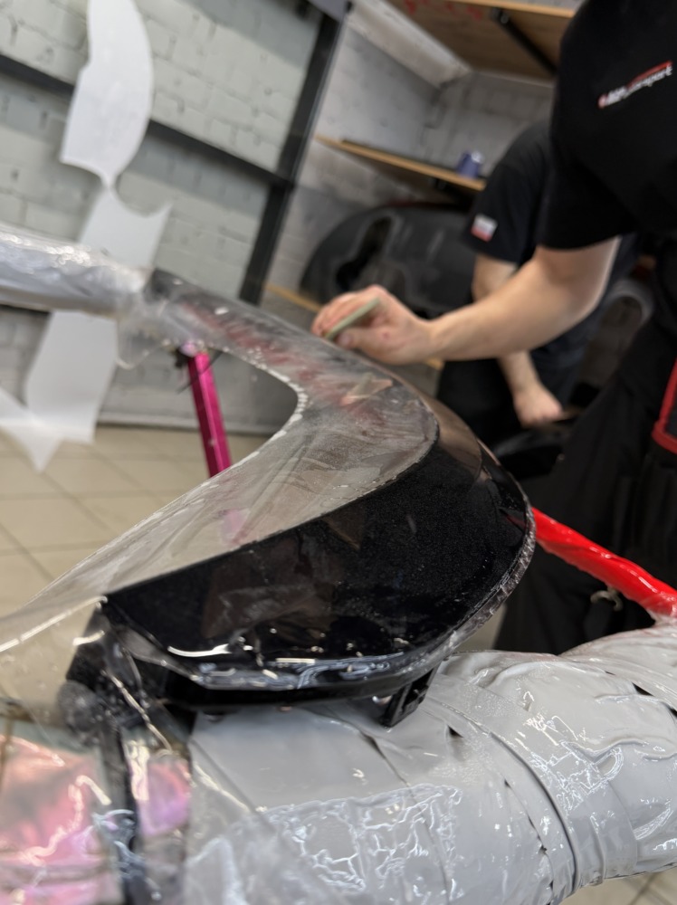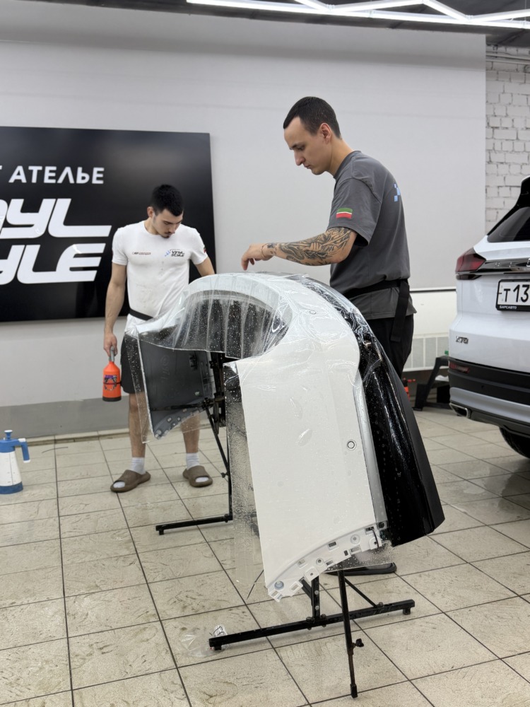 Прозрачной полиуретановой плёнкой оклеили: