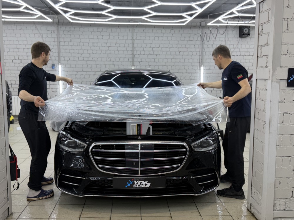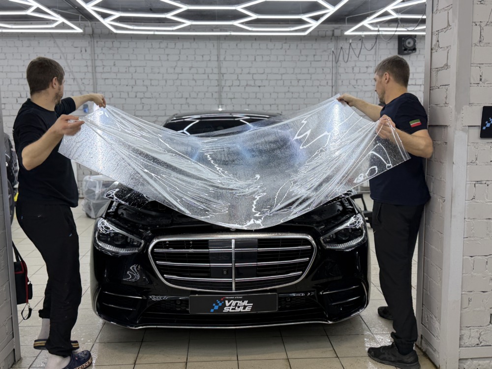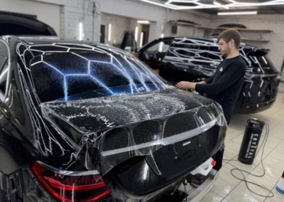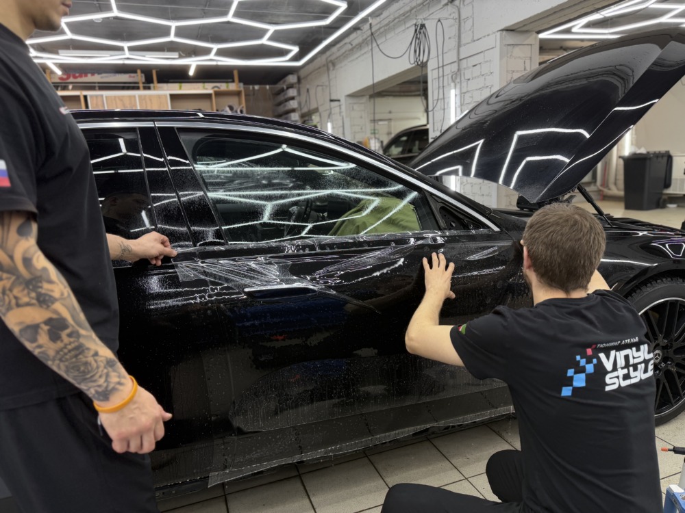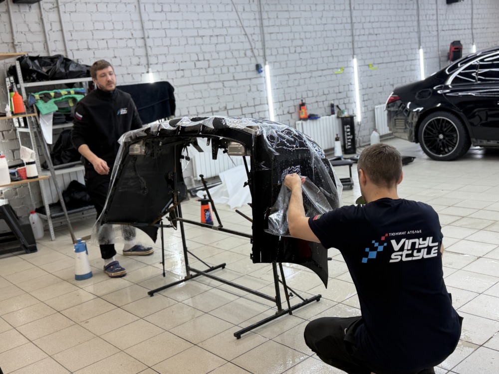 В этот приезд забронировали полиуретановой плёнкой всю заднюю часть автомобиля, двери, капот и наружные пороги.