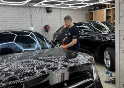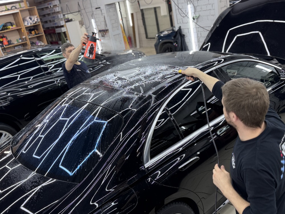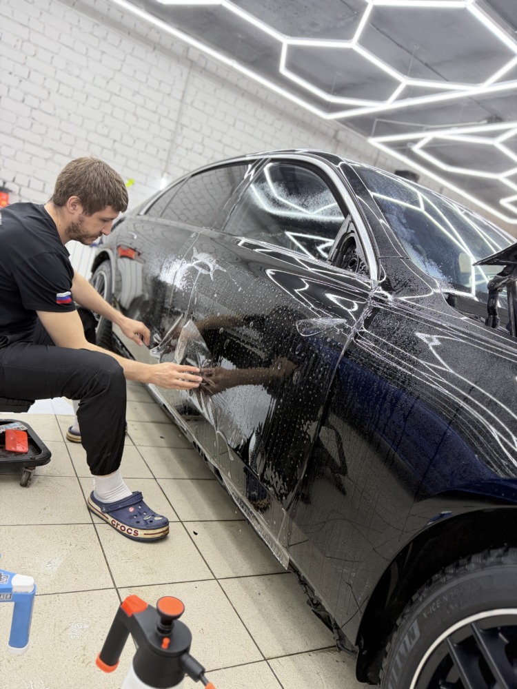 Год назад автомобиль уже приезжал к нам для бронирования наиболее уязвимых элементов кузова. За это время владелец заметил колоссальную разницу: после каждой мойки оклеенные детали кузова выглядели идеально, а неоклеенные — в царапинах.