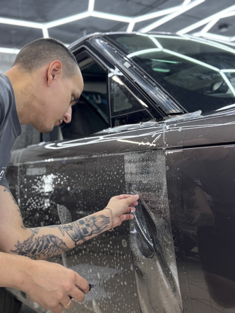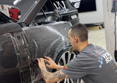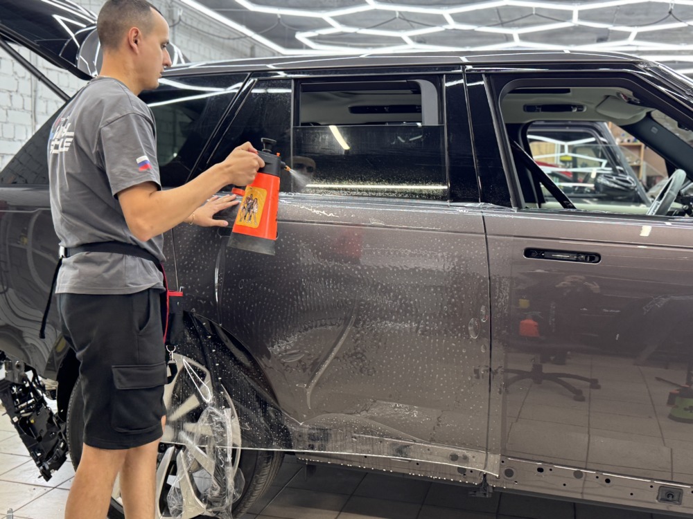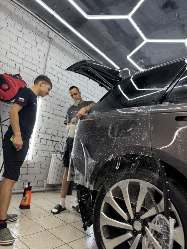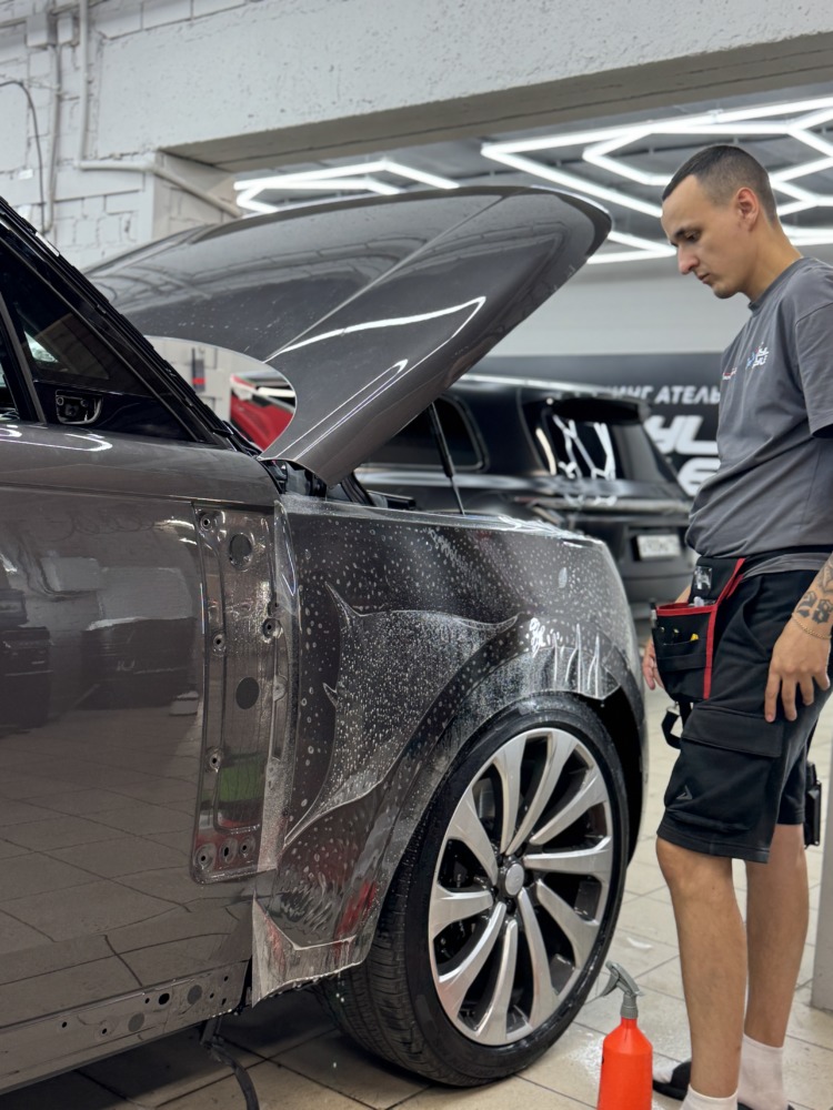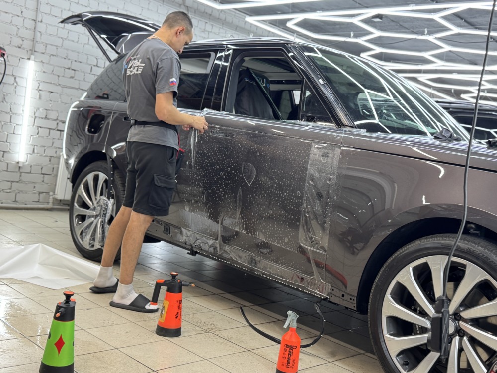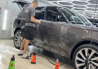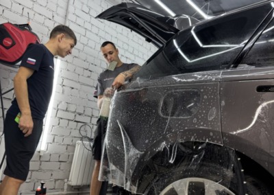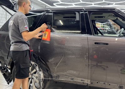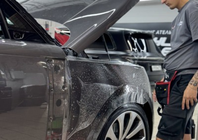 Бронирование кузова Range Rover полиуретановой пленкой Защитили лакокрасочное покрытие Range Rover, полностью забронировав кузов глянцевой полиуретановой плёнкой. Невидимая глазу плёнка сохранит глубину цвета и блеск кузова.