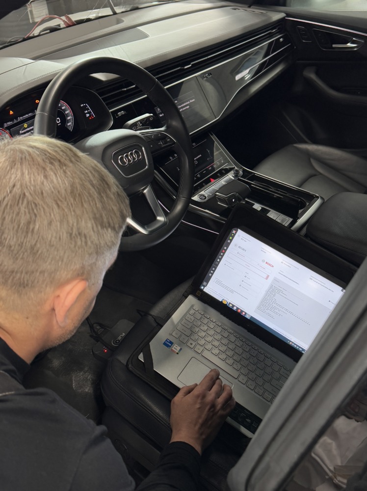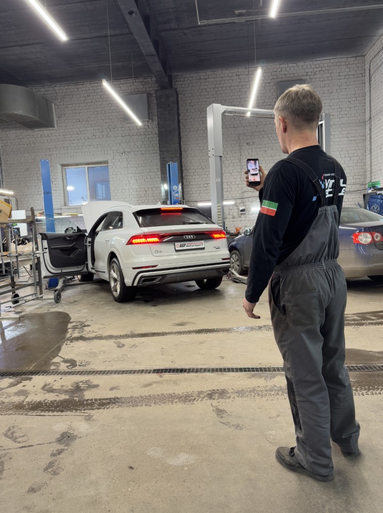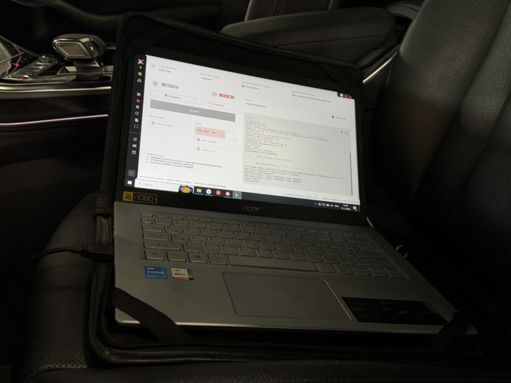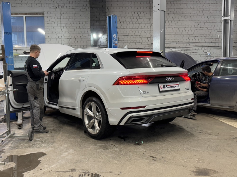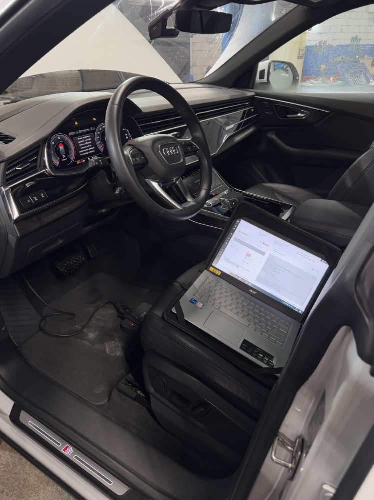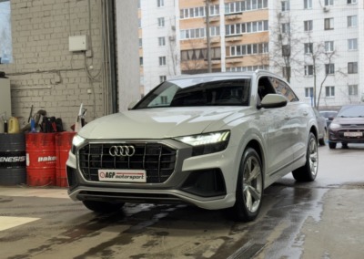 В работе была Audi Q8 3 литра дизель 231 лошадиная сила. Автомобиль задушен с завода. Сделали чип-тюнинг, отключим систему AdBlue и систему старт стоп.