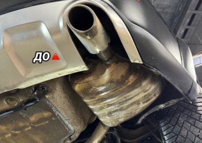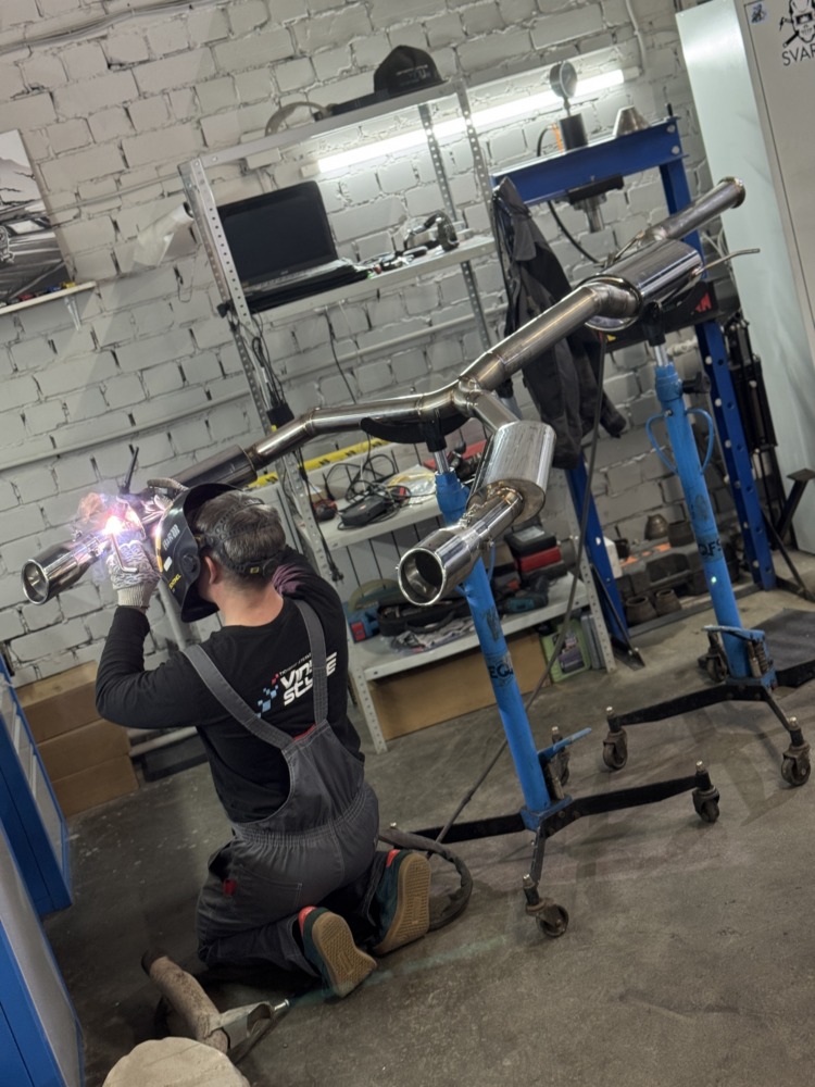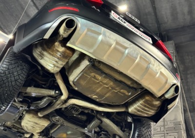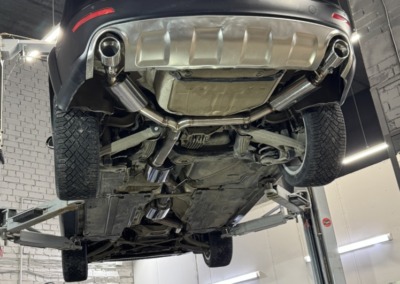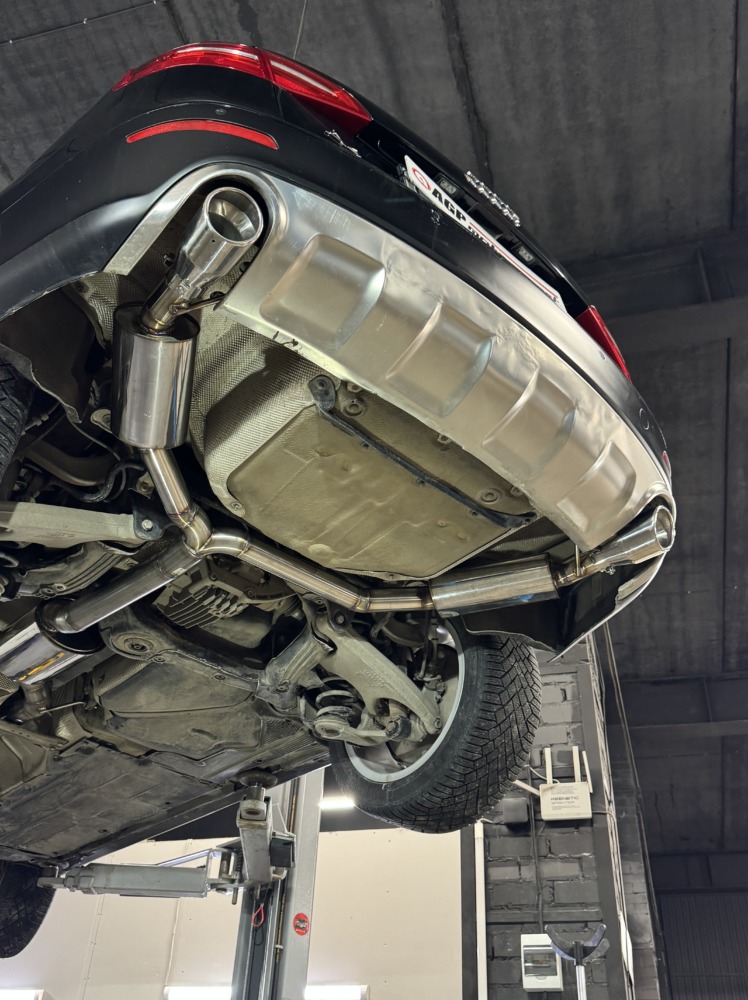В рамках доработок была установлена турбина K04-64, выполнен даунпайп и произведена настройка двигателя под бензин АИ-95.