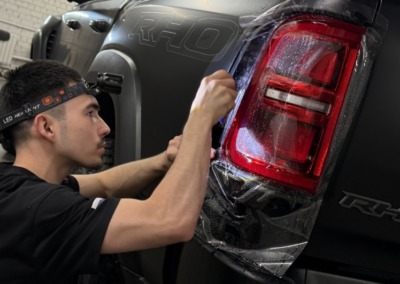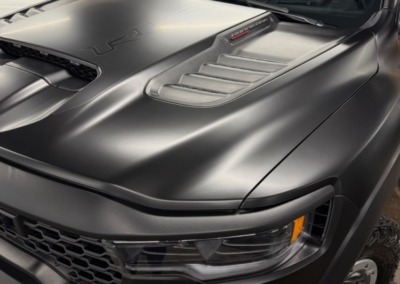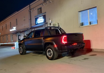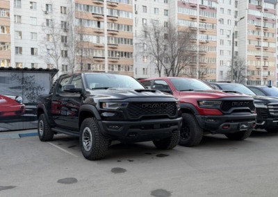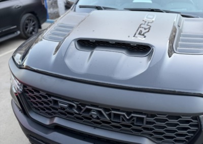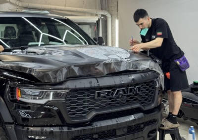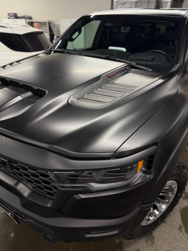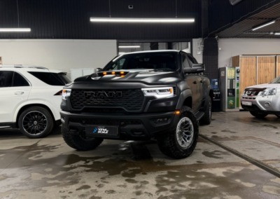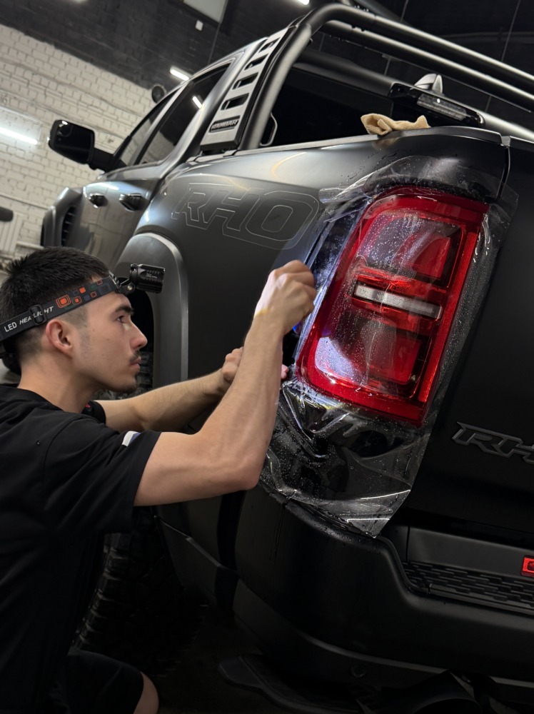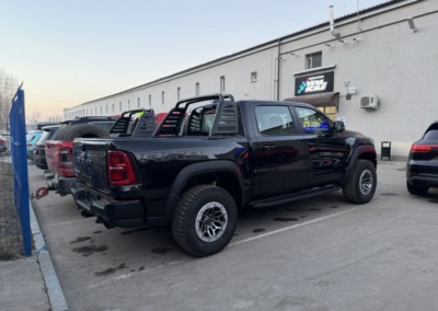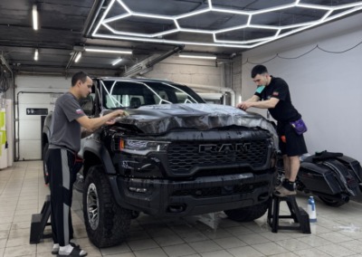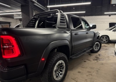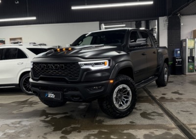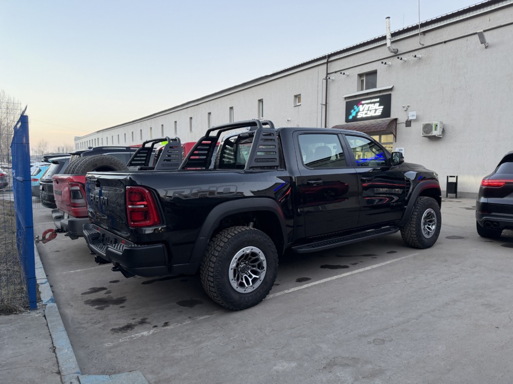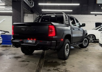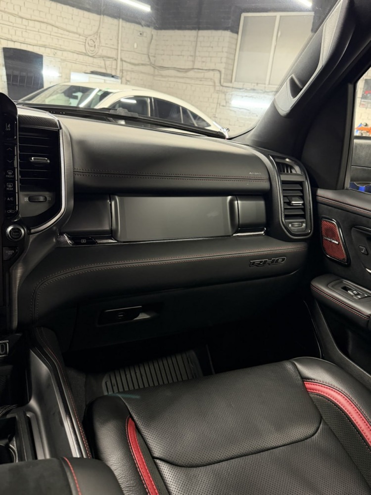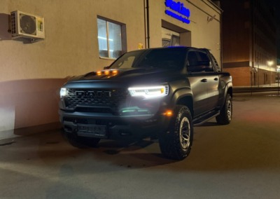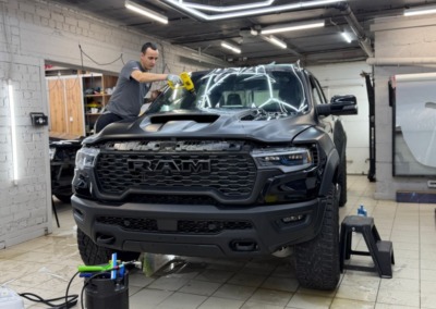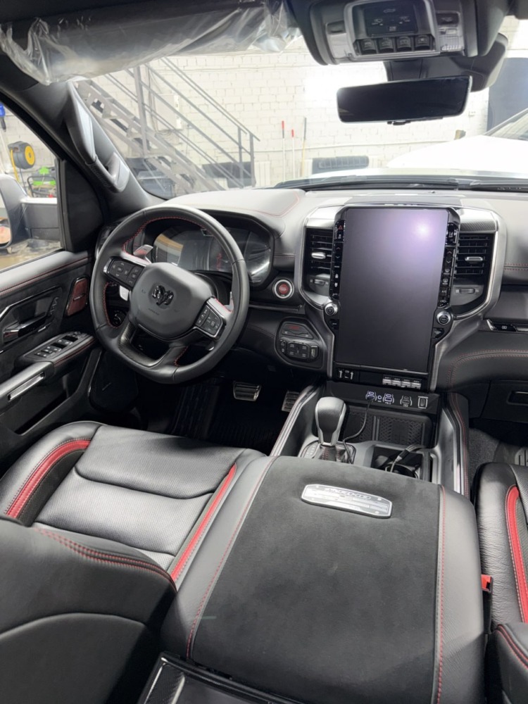 Страшный сон легковушек! Dodge Ram RHO, чёрный, оклеенный в мат, с забронированным в мат салоном, лобовое стекло тоже в защитной плёнке.