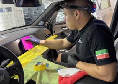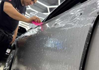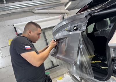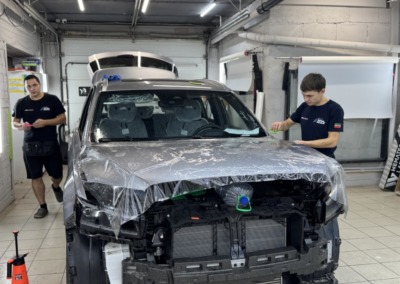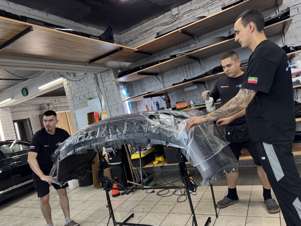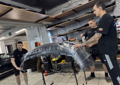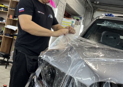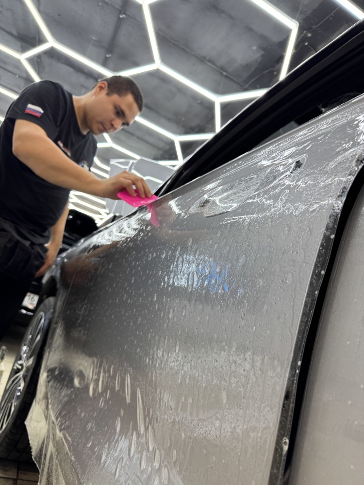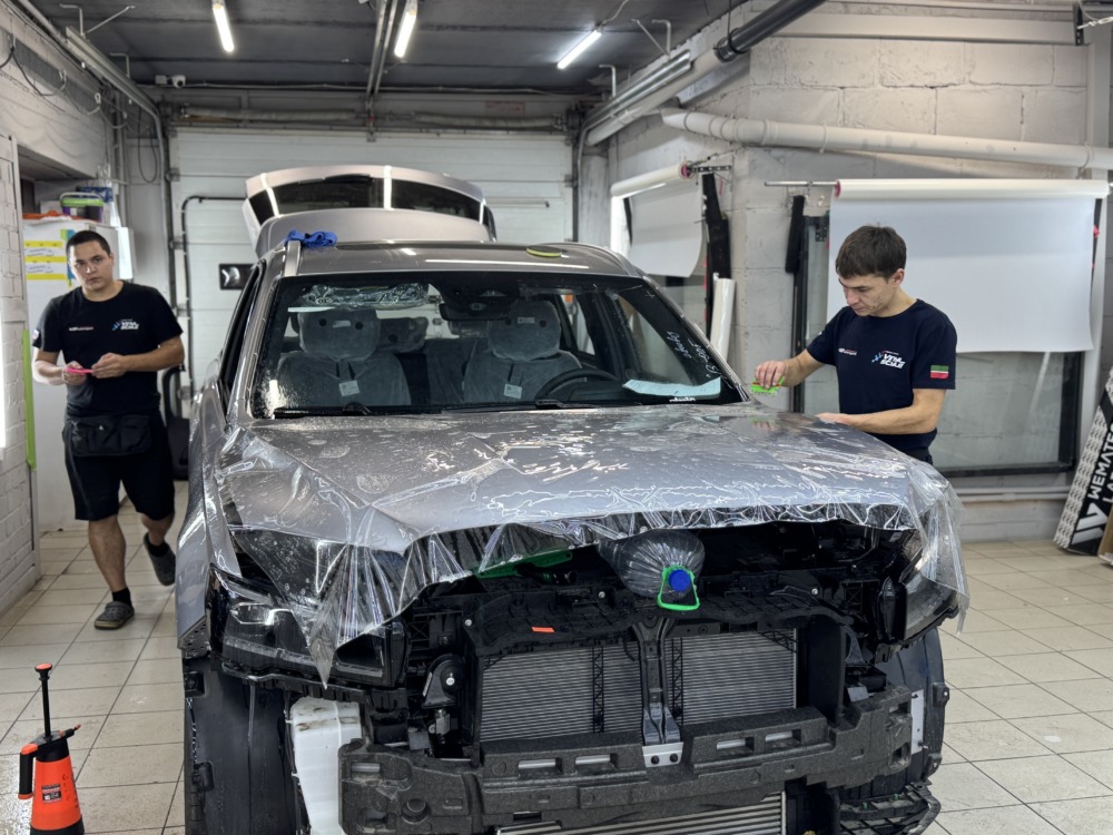 Защитили весь кузов нового автомобиля от сколов и царапин, забронировав его в глянцевую полиуретановую плёнку.