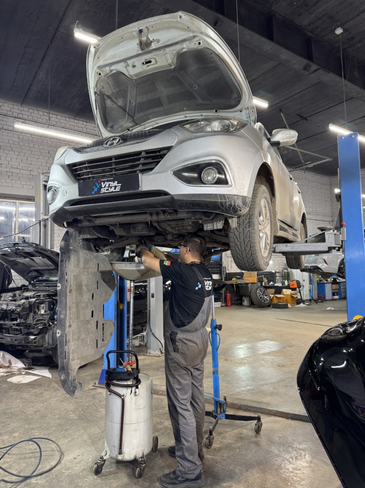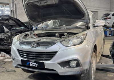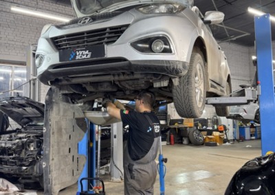 Не стоит пренебрегать диагностикой ходовой части. Эта Hyundai IX35 приехала к нам лишь на замену масла и фильтров, но мы вовремя обнаружили разрыв сайлентблоков.