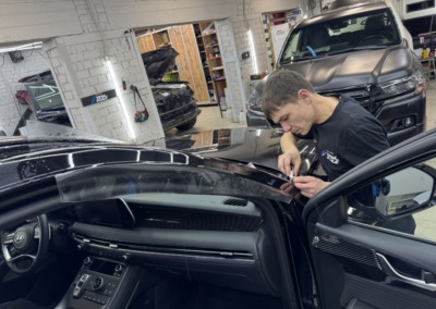 Мы аккуратно устранили все царапины профессиональной полировкой, защитили ключевые зоны кузова полиуретановой плёнкой и нанесли керамическое покрытие для максимального блеска и долговременной защиты.