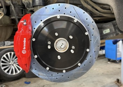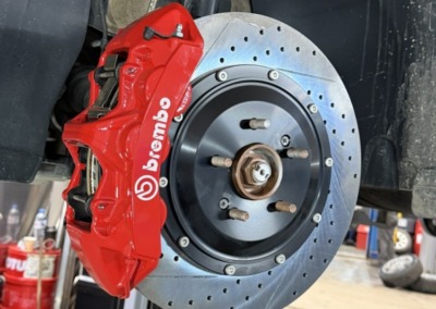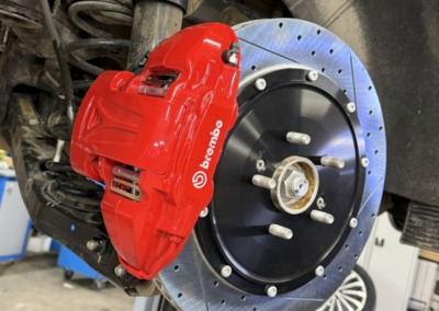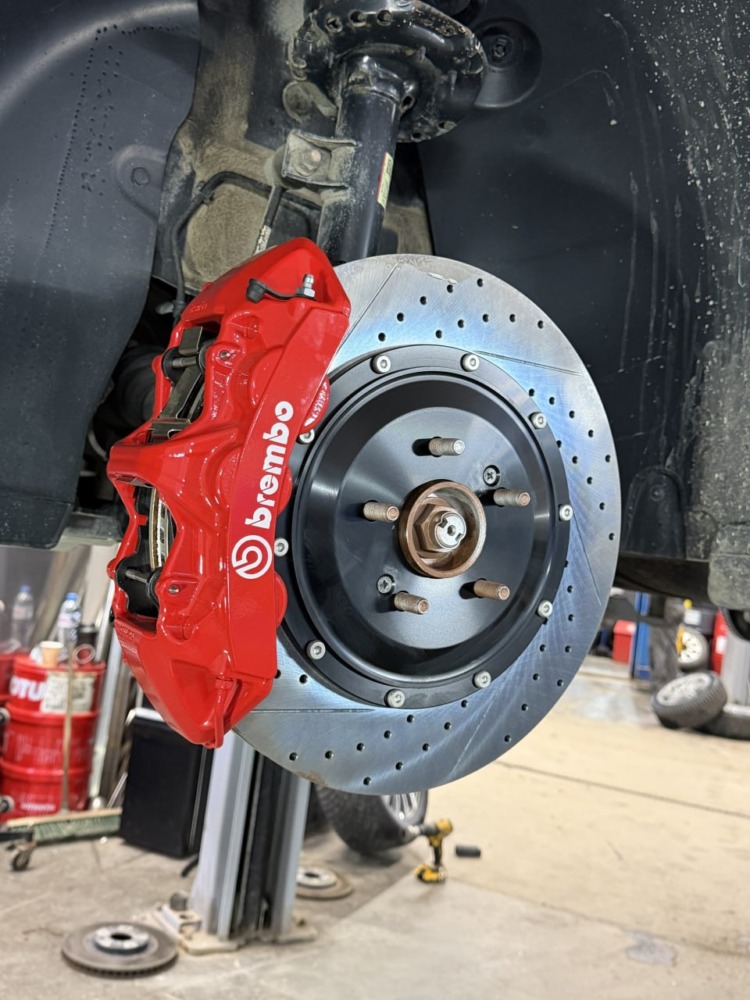 Штатная тормозная система здесь не самая мощная, поэтому мы установили улучшенные тормоза от компании Brembo.
