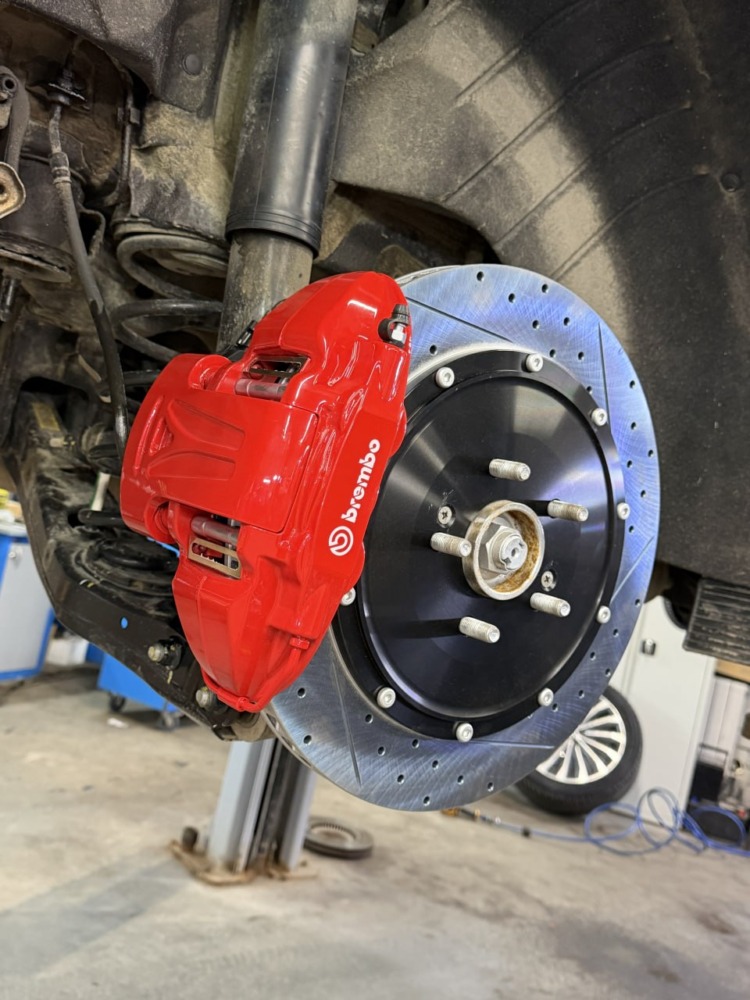 На передней оси 2-поршневые суппорты заменили на 6-поршневые.