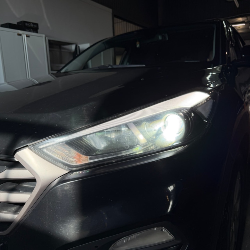 На Hyundai Tucson 2017 года с завода были установлены галогеновые фары. Владелец для улучшения освещения установил диодные лампы, однако этот вариант не справился с поставленной задачей.
