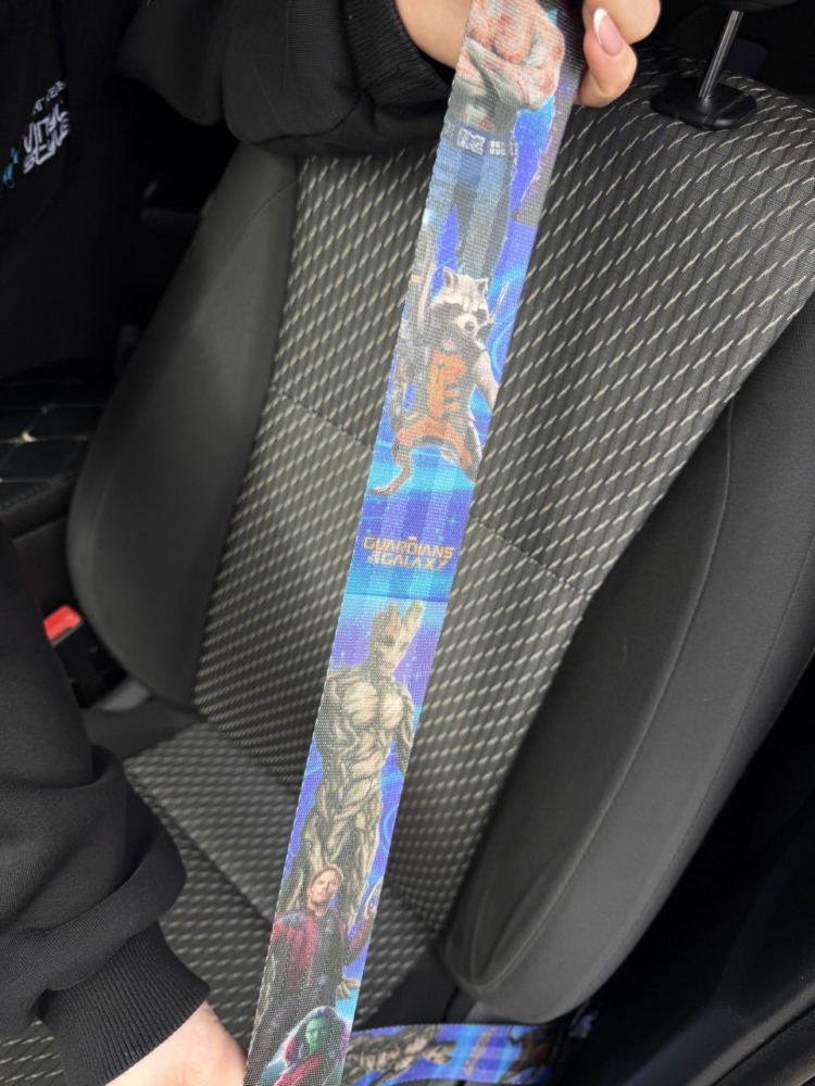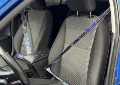 Kia Rio X-Line — замена ремней безопасности Добавили ярких красок в повседневные будни, заменив классические чёрные ремни безопасности на эксклюзивные. Kia Rio X-Line Под заказ большой выбор оттенков, а так же одно- либо двусторонние ремни с любыми надписями и рисунками.