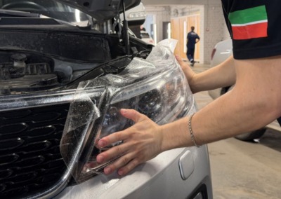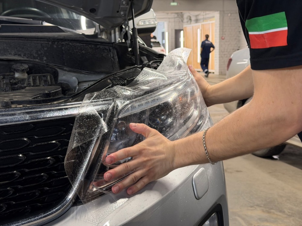 Стёкла фар отполировали и забронировали пленкой.