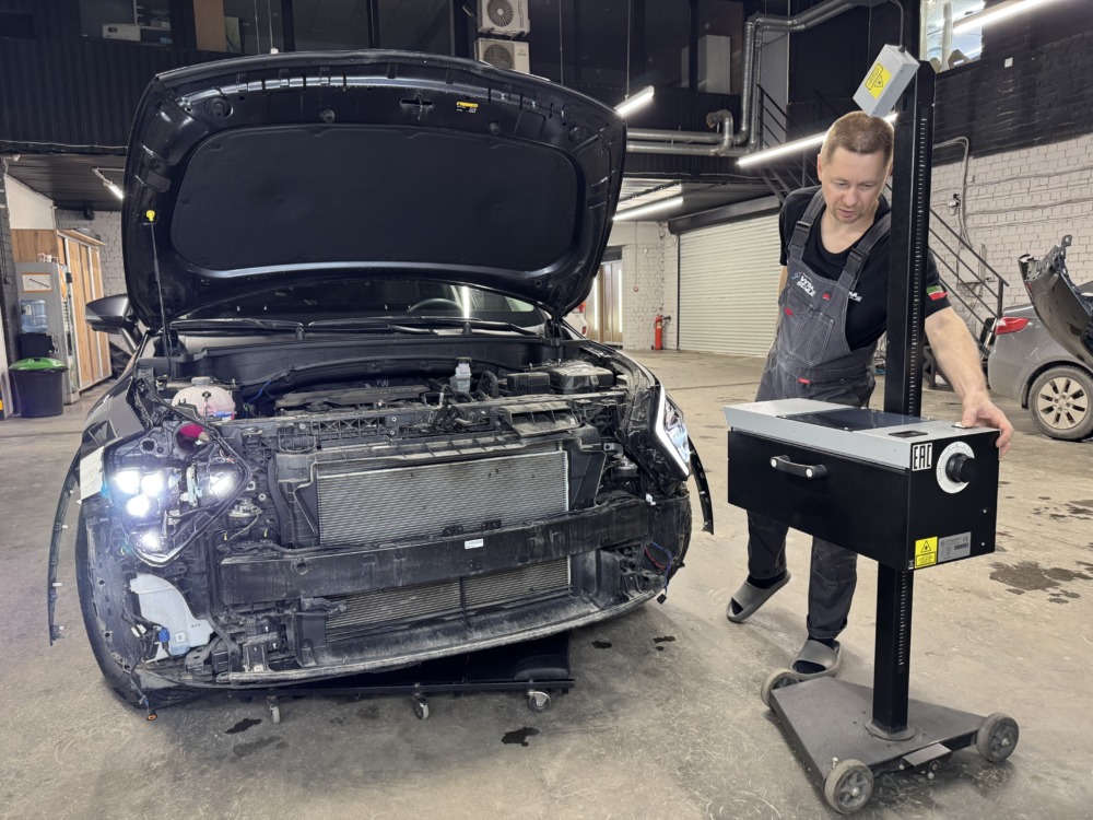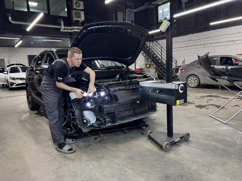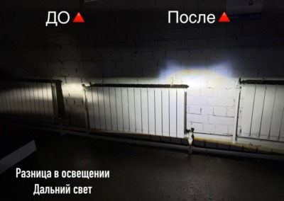 Коллега этого клиента, увидев разницу в свете (а автомобиль у него такой же), не раздумывая записался к нам на установку bi-led модулей.