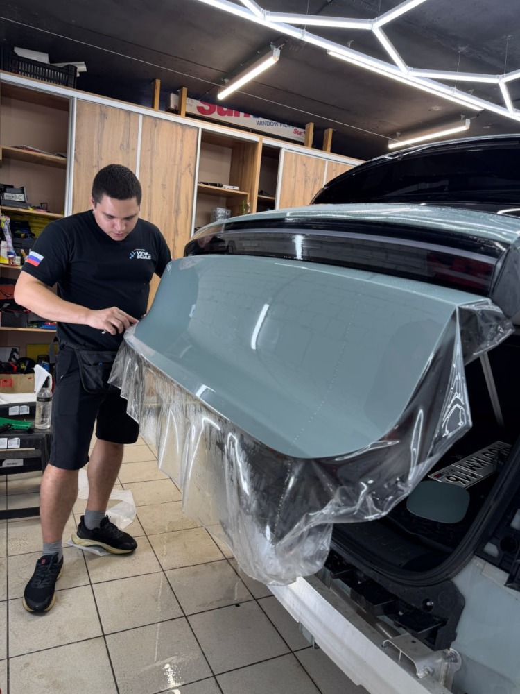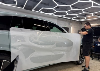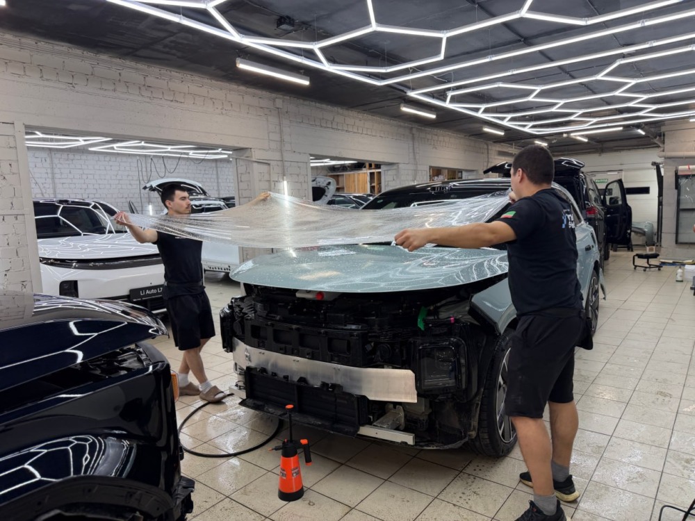 LiXiang L7 — бронирование кузова полиуретановой пленкой Такой цвет нужно защищать с первого километра. LiXiang L7 прямо из салона приехал к нам на полное бронирование, чтобы сохранить ЛКП в заводском виде. Плёнка абсолютно прозрачная и не изменяет цвет кузова.