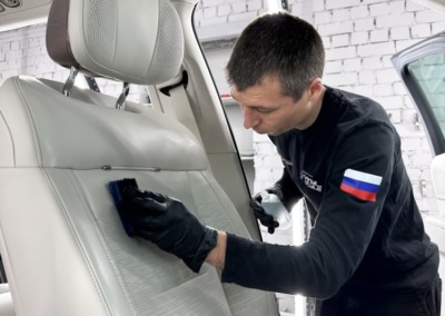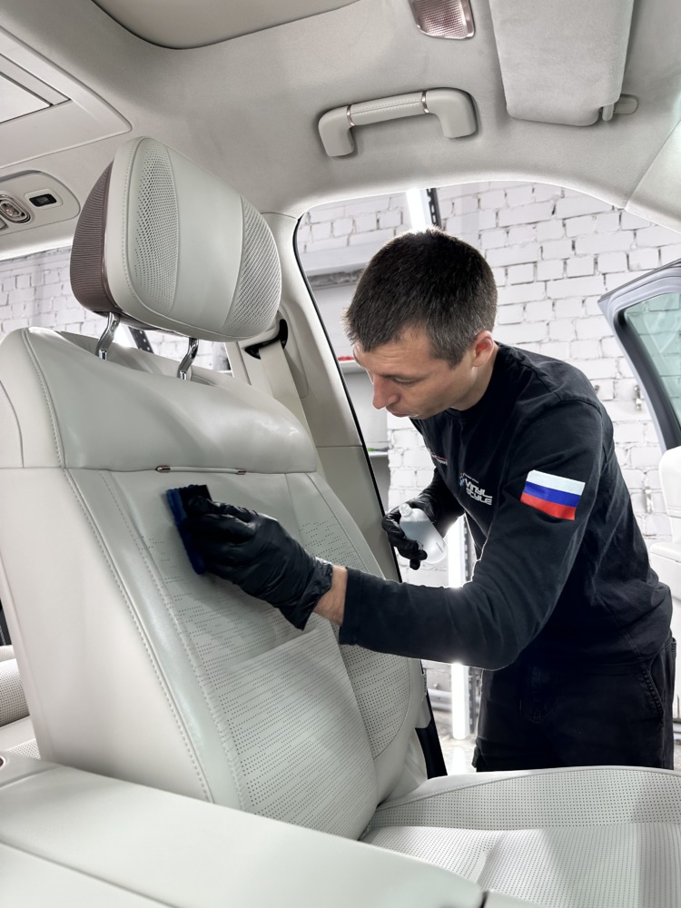 Светлый кожаный салон был обработан керамическим составом для защиты от загрязнений, пятен, износа и выцветания.