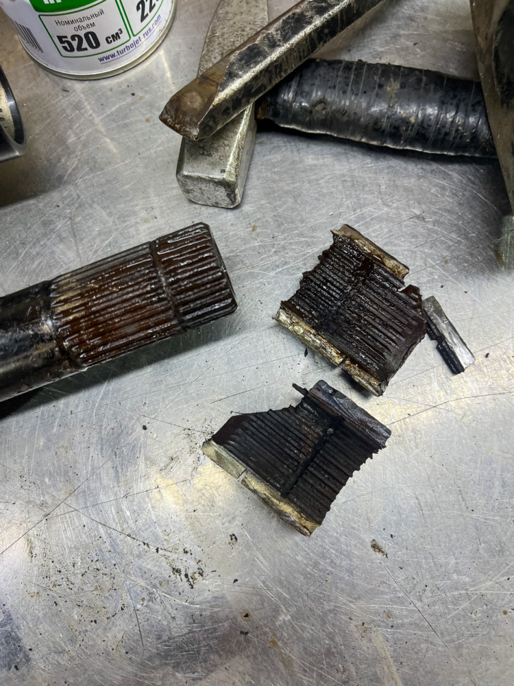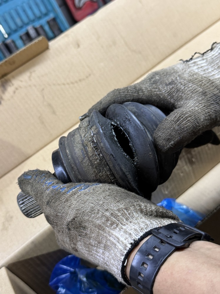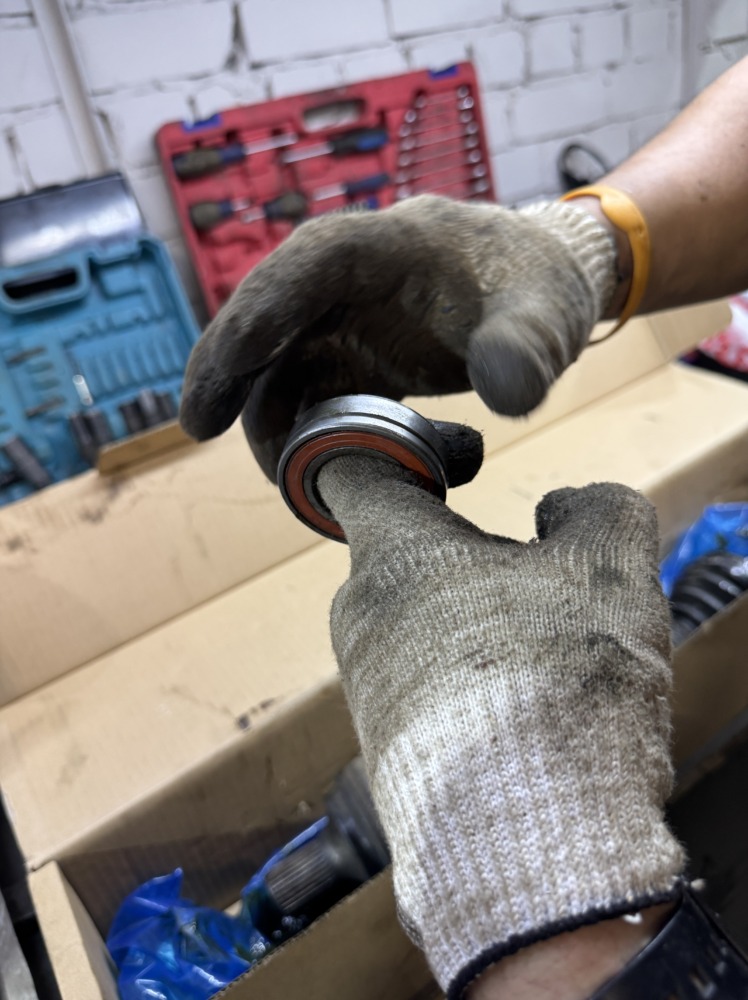 В ходе диагностики была выявлена необходимость замены левого привода и подвесного подшипника. Также попутно были заменены передние тормозные колодки.