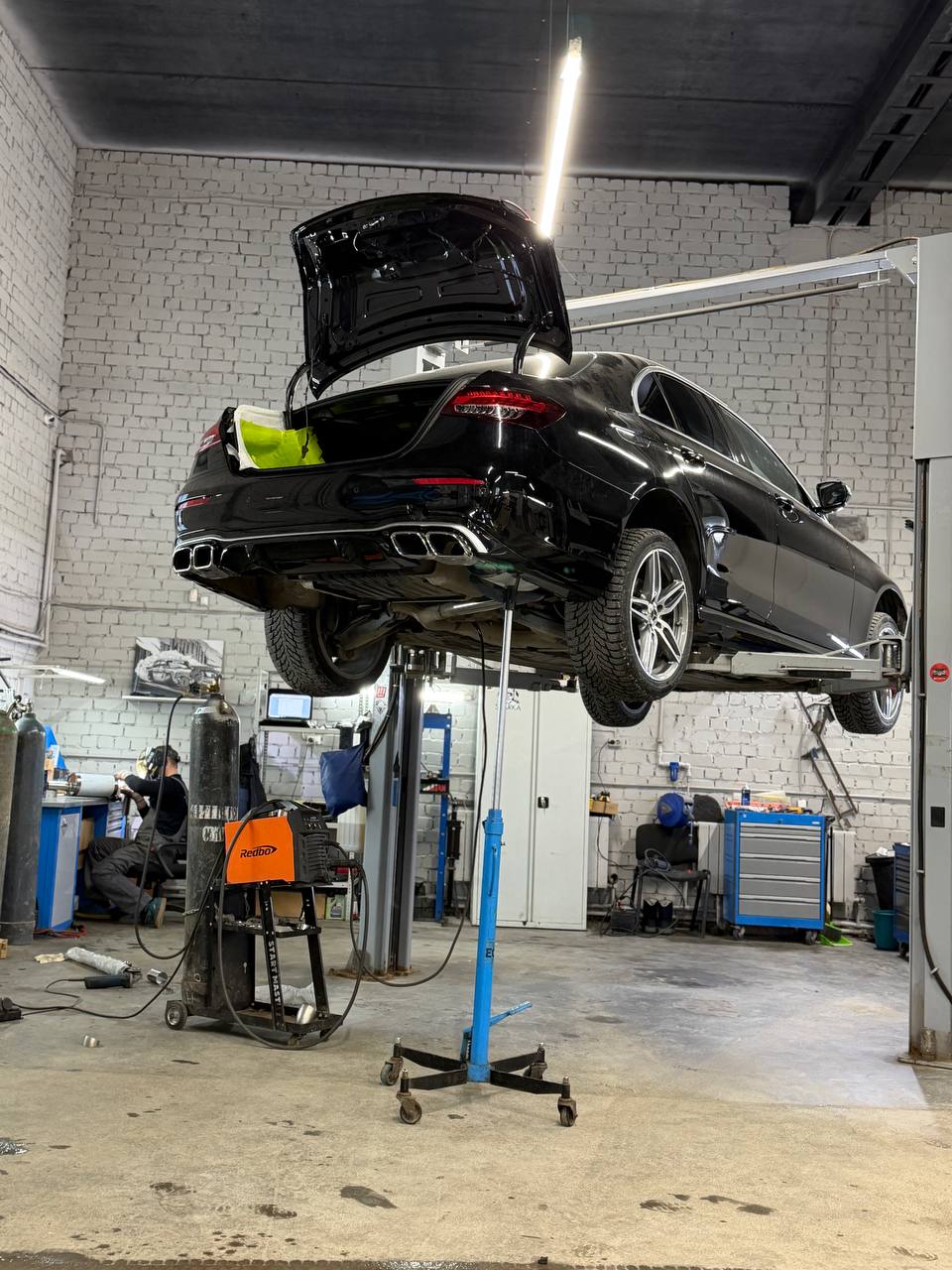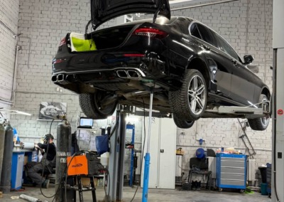 В процессе доработки автомобиль получил эффектную атмосферную подсветку салона, был окрашен и дополнен агрессивным обвесом в стиле AMG, что придало машине ещё более выразительный и динамичный внешний вид. Для максимального комфорта установили доводчики дверей и реализовали электропривод багажника, чтобы каждое использование автомобиля приносило удовольствие.