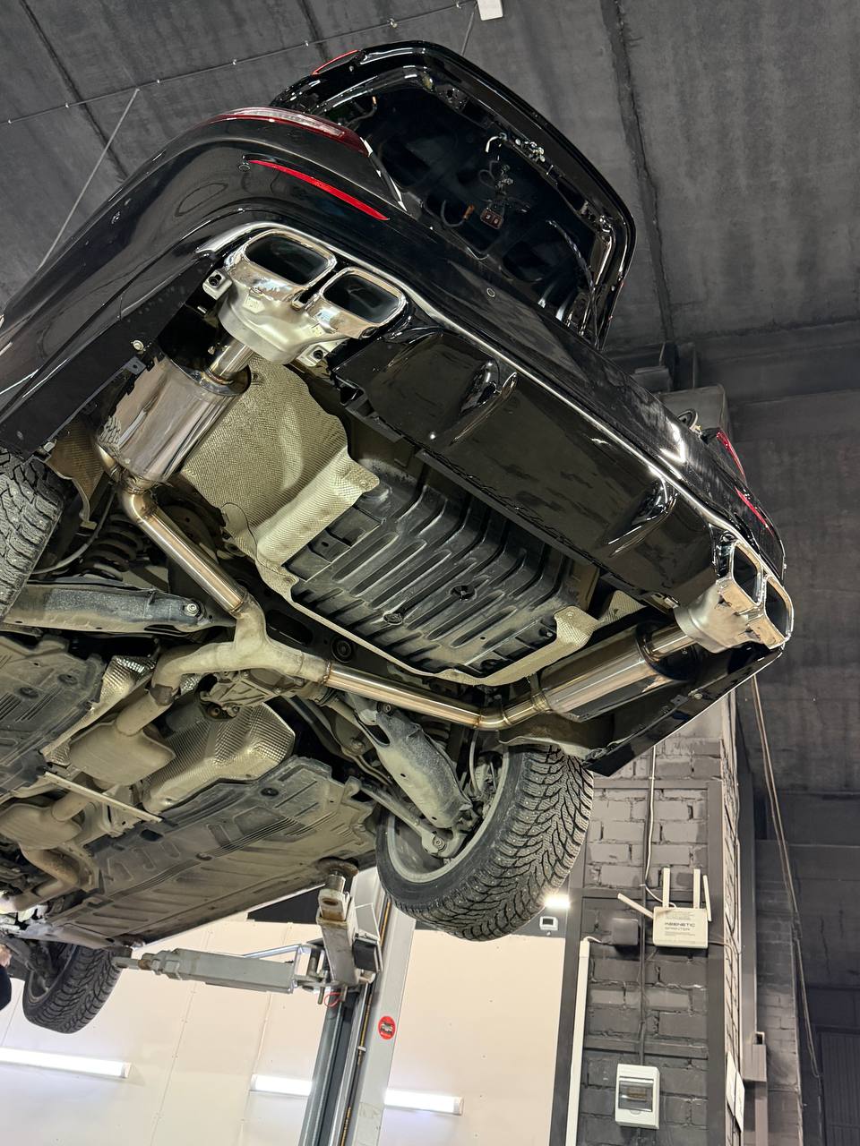 Особого внимания заслуживает управляемый выхлоп на заслонке — мы изготовили и настроили его так, чтобы водитель мог выбирать характер звучания: от спокойного до по-настоящему спортивного. А завершающим штрихом стала установка сабвуфера, обеспечивающего насыщенное и глубокое звучание любимой музыки.