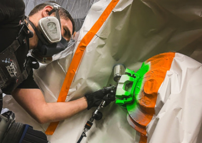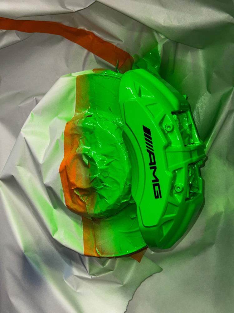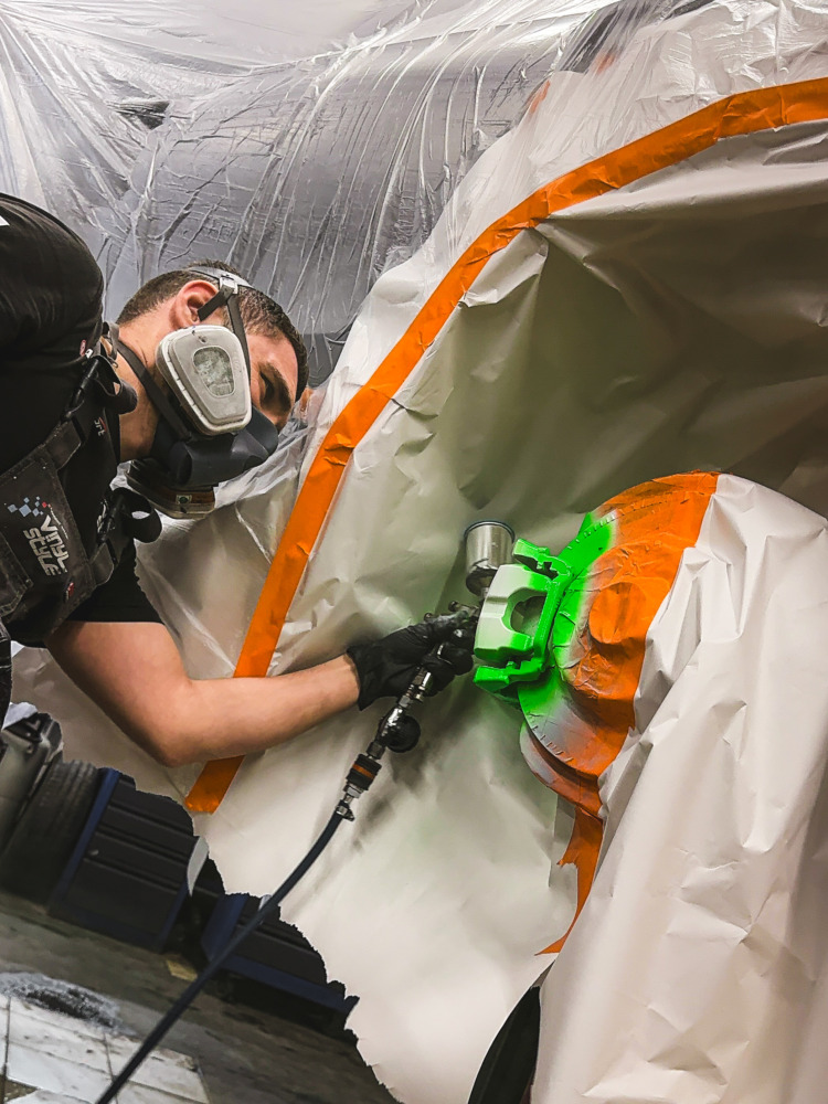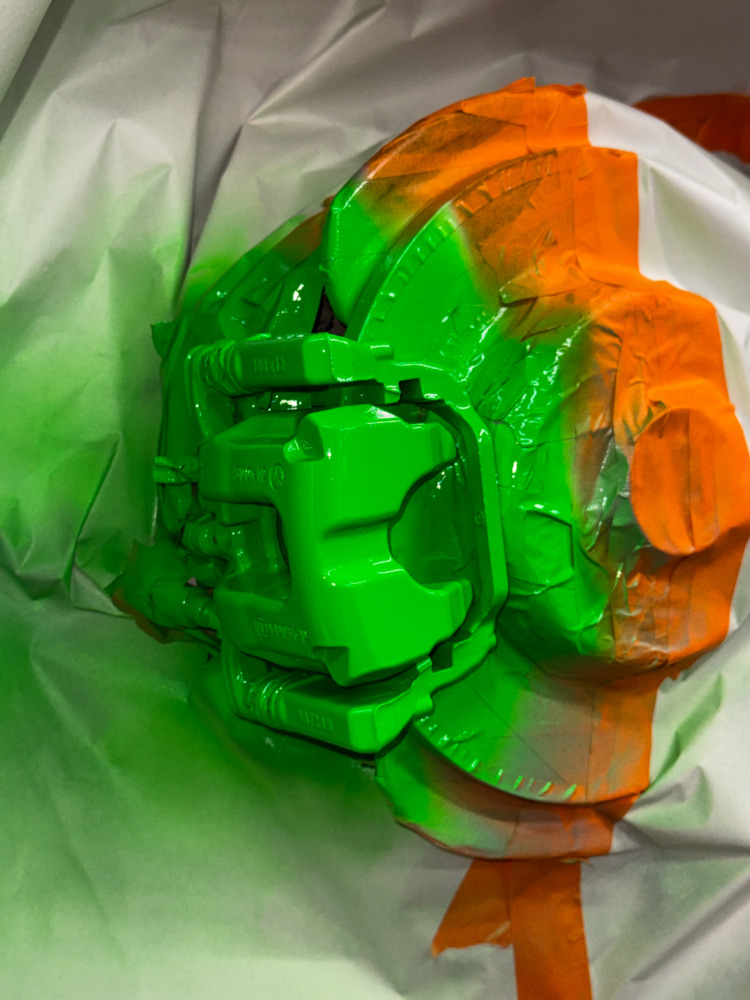 — покраска суппортов в ярко-зелёный цвет с нанесением логотипа