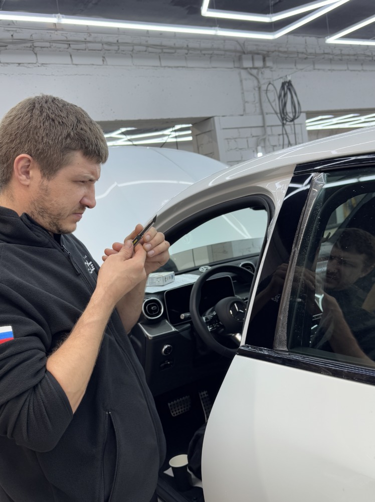 Владелец Mercedes GLC coupe пожелал защитить кузов, не теряя заводского оттенка, но добавив уникальности.