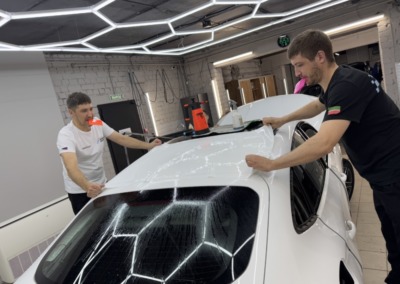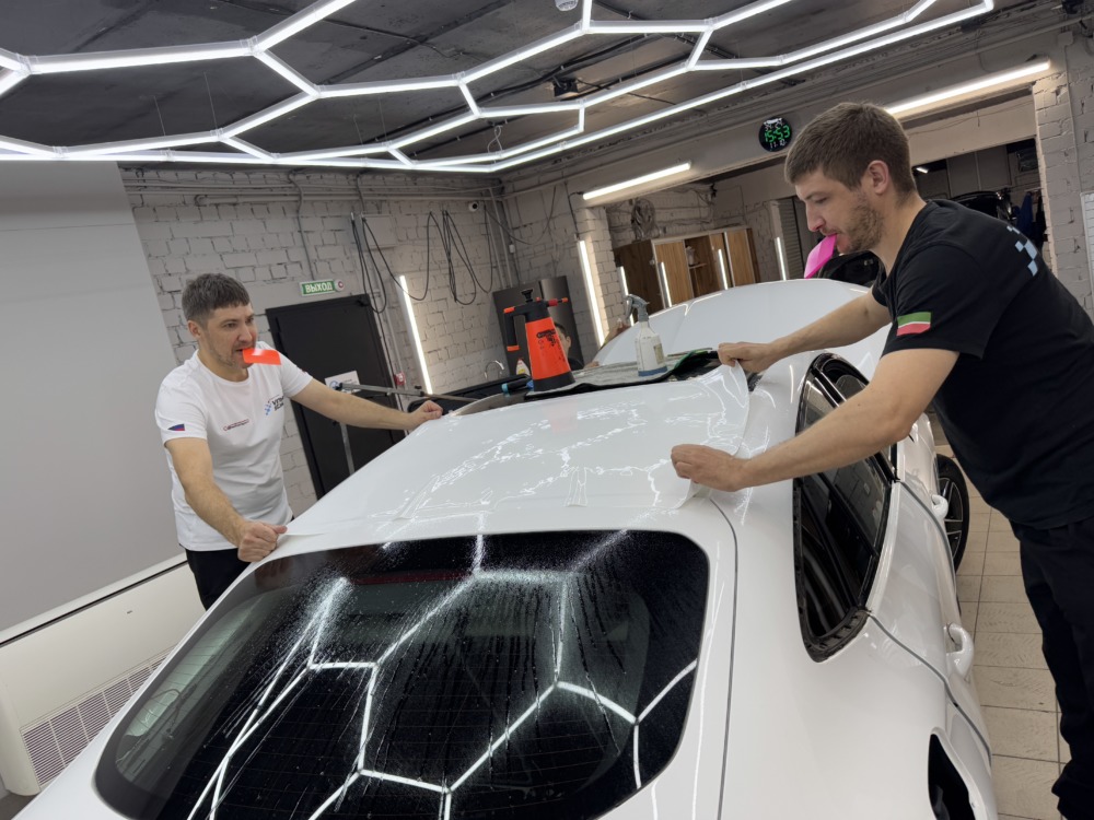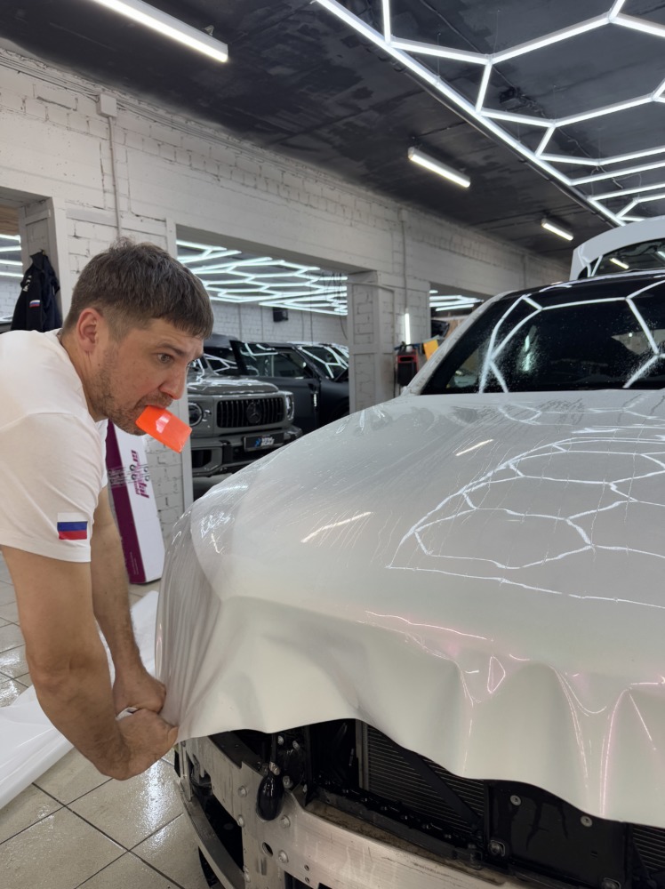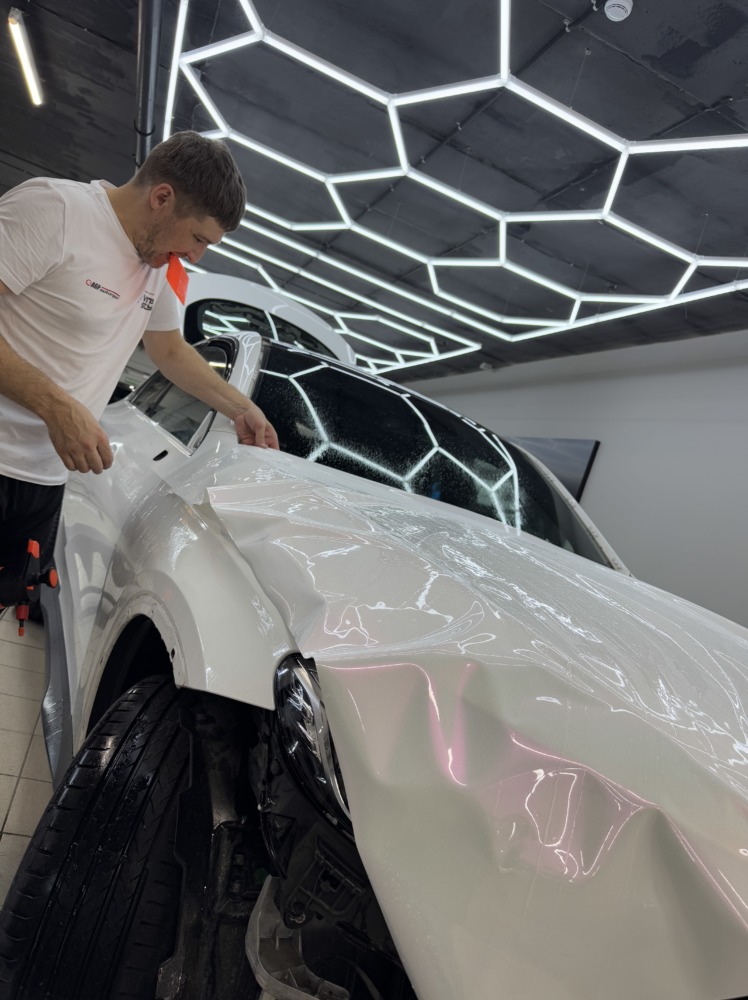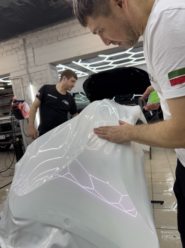 Плёнка не чисто белого цвета, а с розоватыми переливами. При разном освещении автомобиль смотрится всегда по-разному. Как вам выбор цвета, друзья?