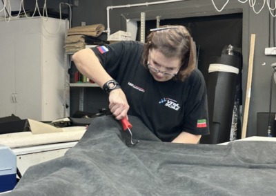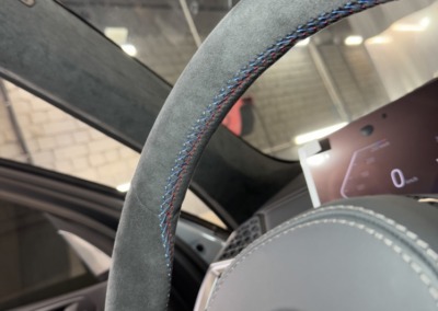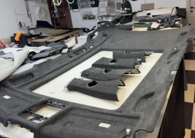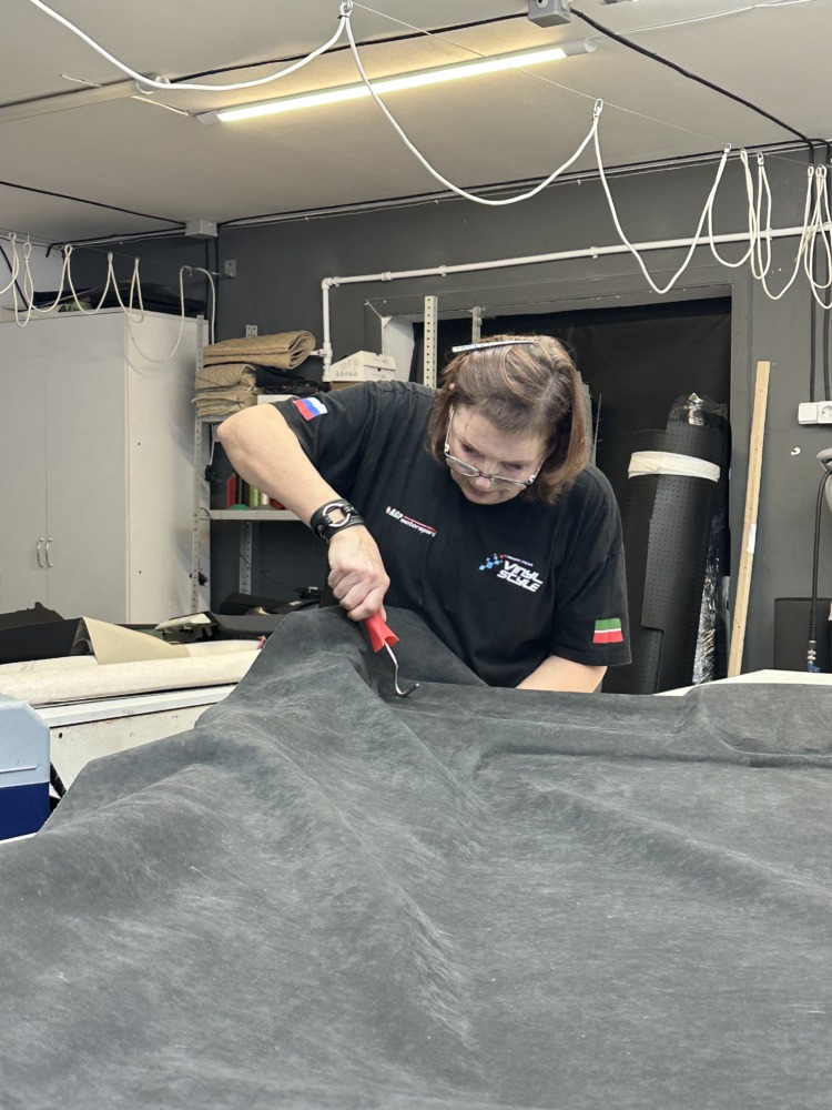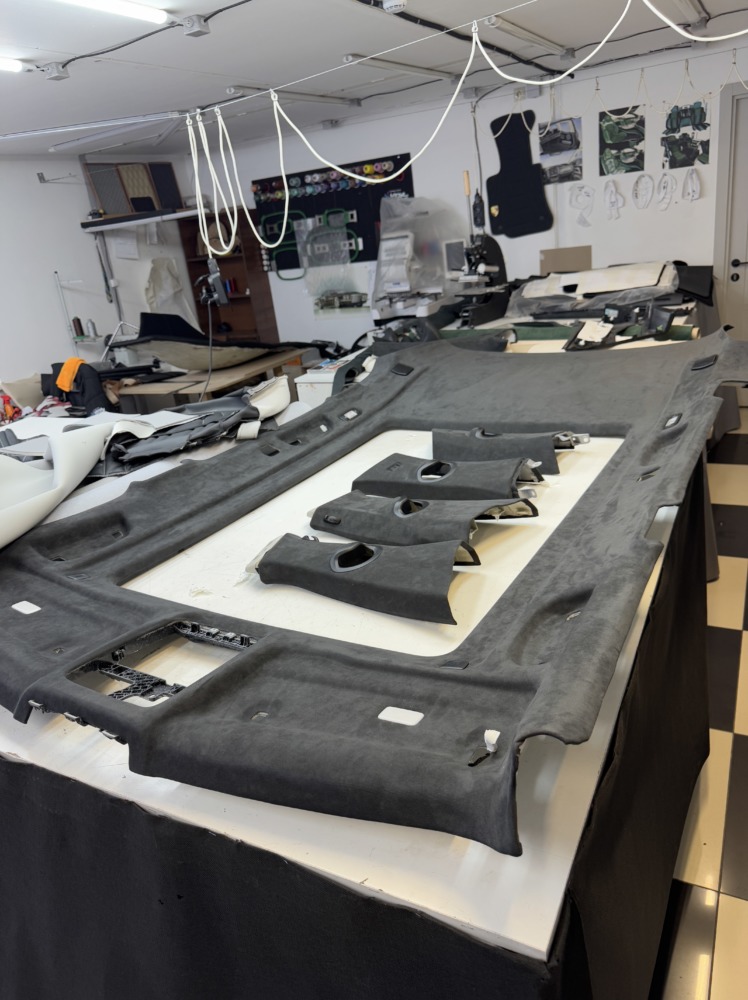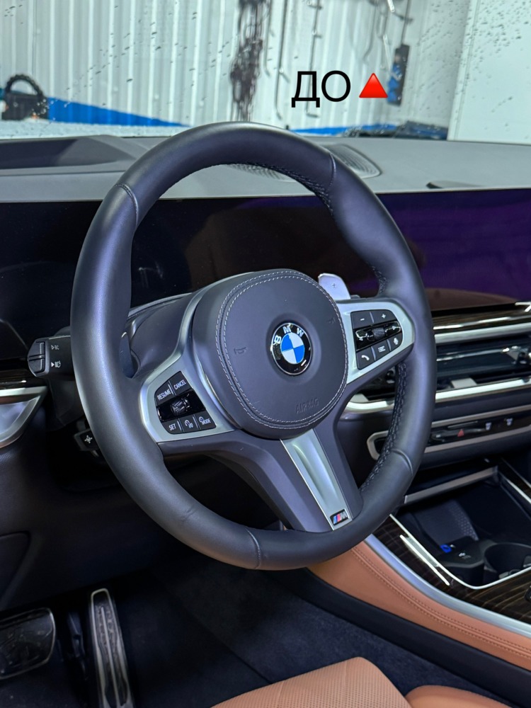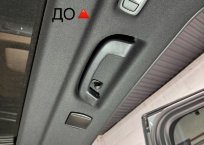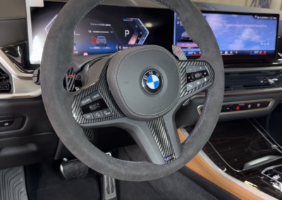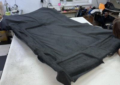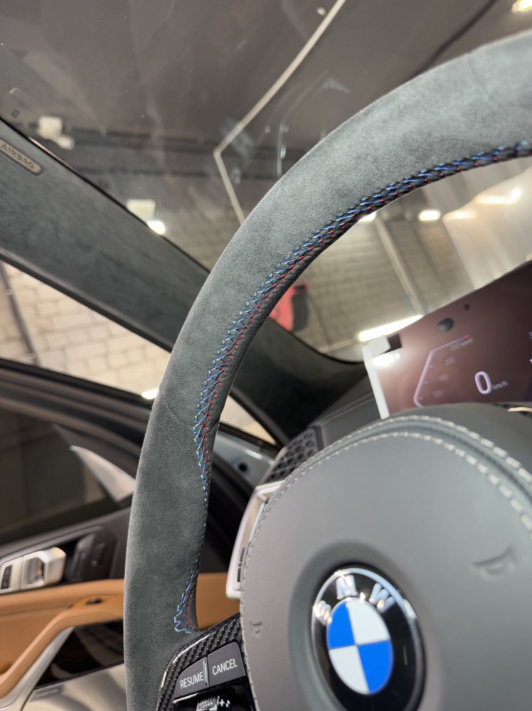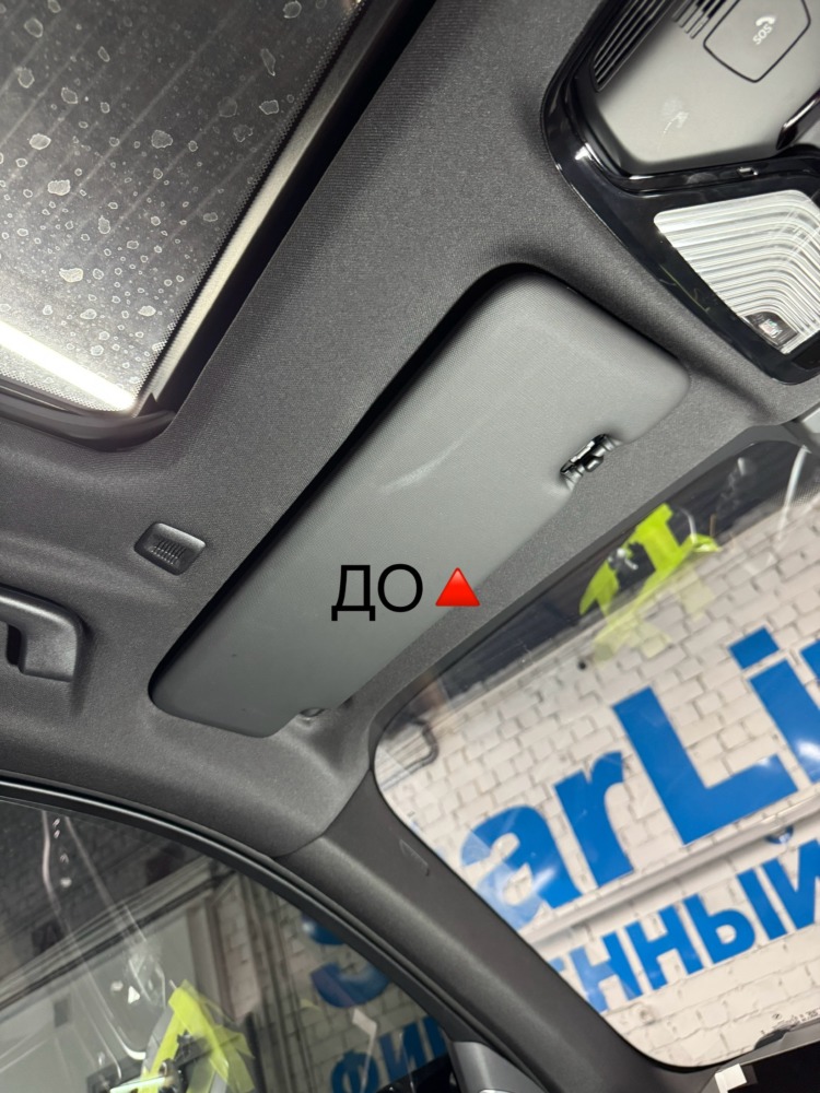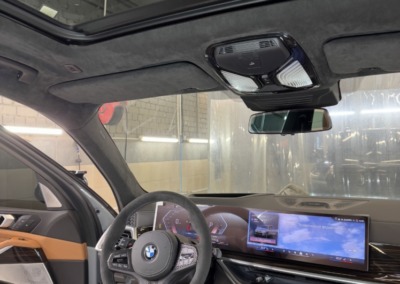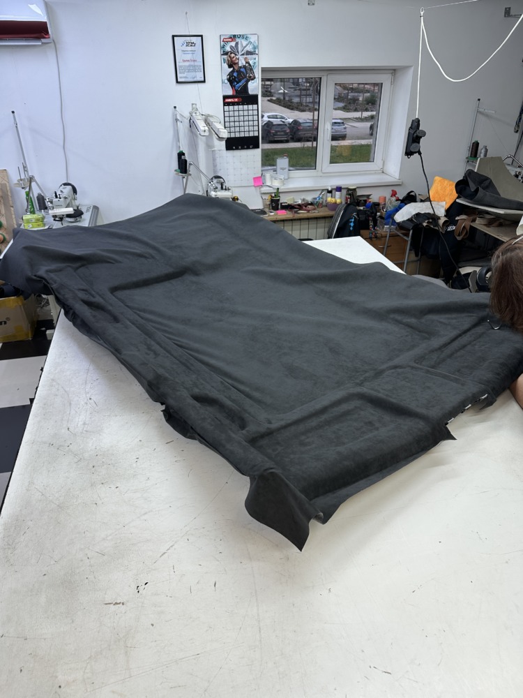 На BMW X5 перешили потолок в алькантару цвета антрацит. Выглядит это так, как должно было быть с завода, с этим цветом салона он выглядит просто безупречно. Помимо потолка, перетянуты были шторка, стойки и козырьки.