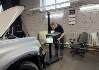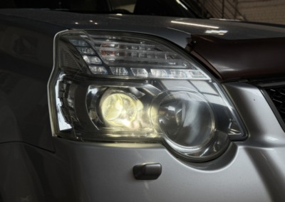 Дополнительно поменяли лампы ПТФ, габаритов и доп. дальнего на крыше на светодиодные, предварительно отполировав всю оптику и забронировав её полиуретановой плёнкой.