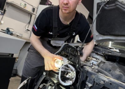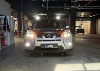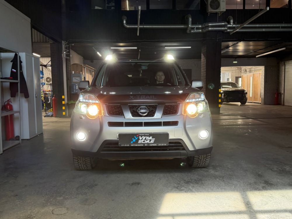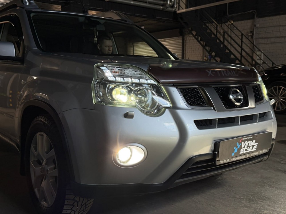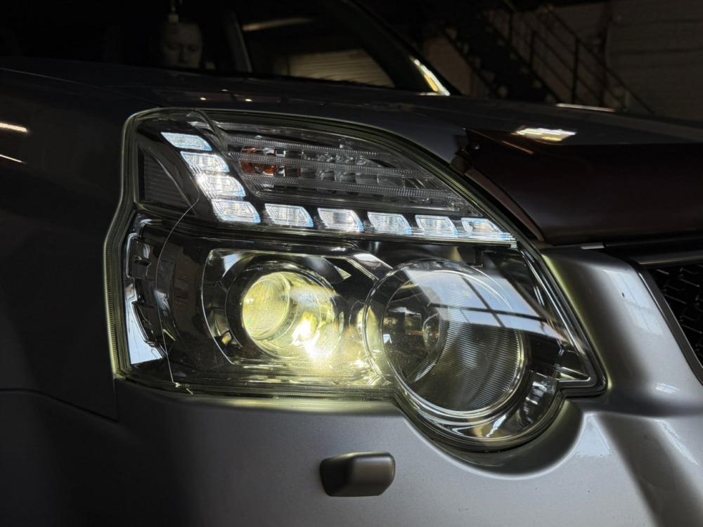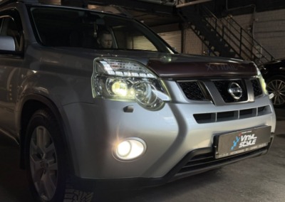 Штатный ксенон Nissan X-Trail 2012 года уже закончил свое существование в этих фарах. Мы заменили его на современные светодиодные bi-led модули, разница в освещении — сумасшедшая!