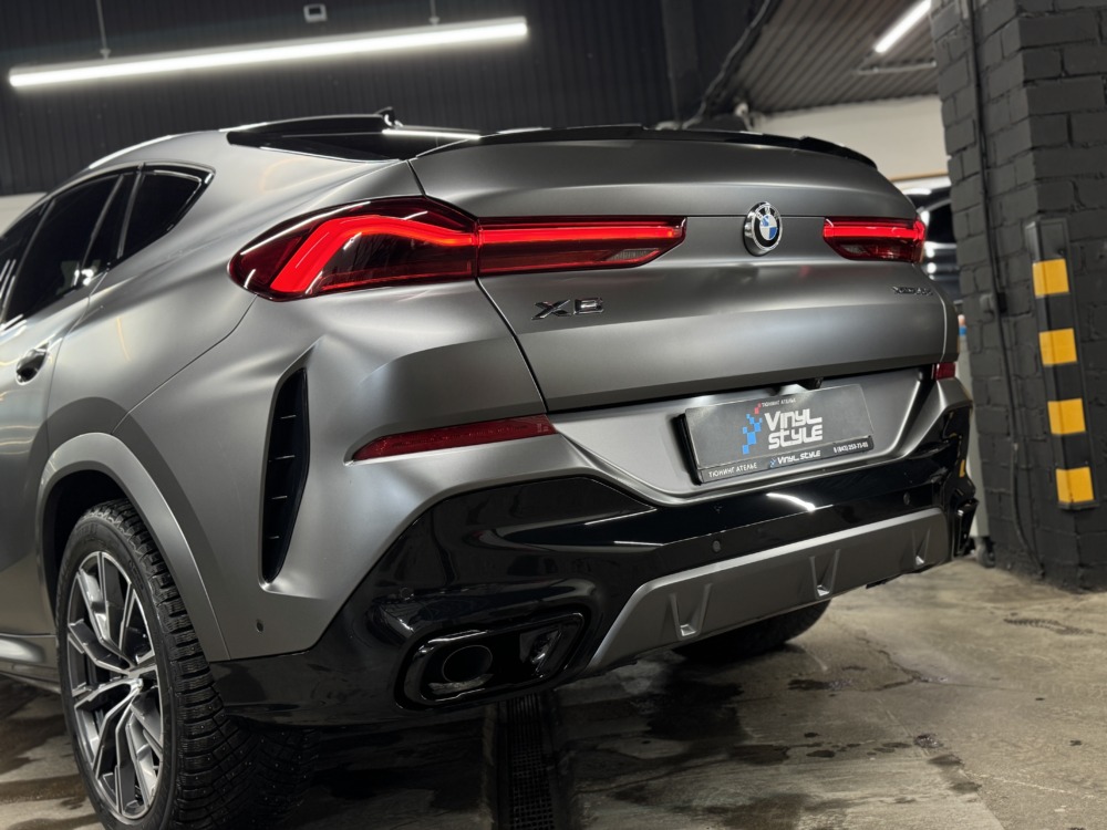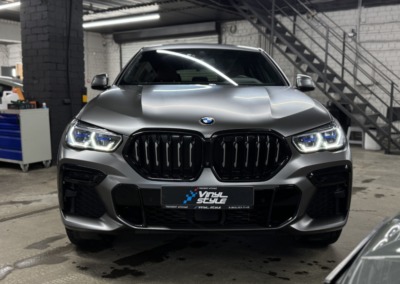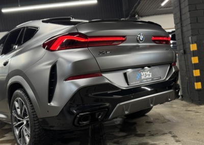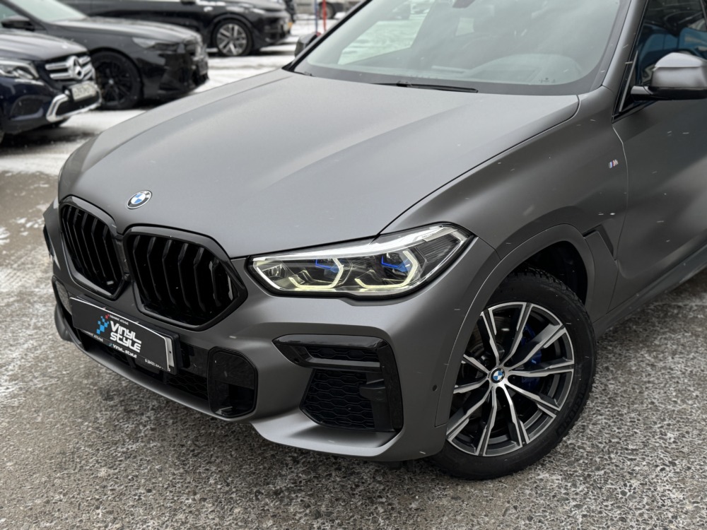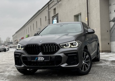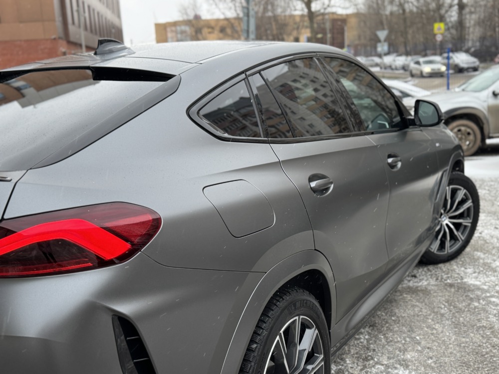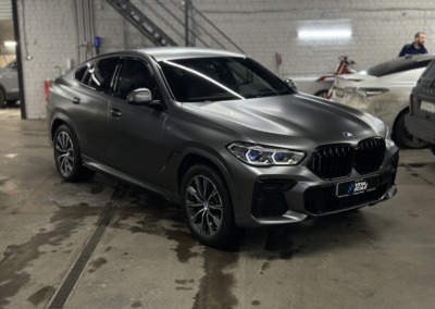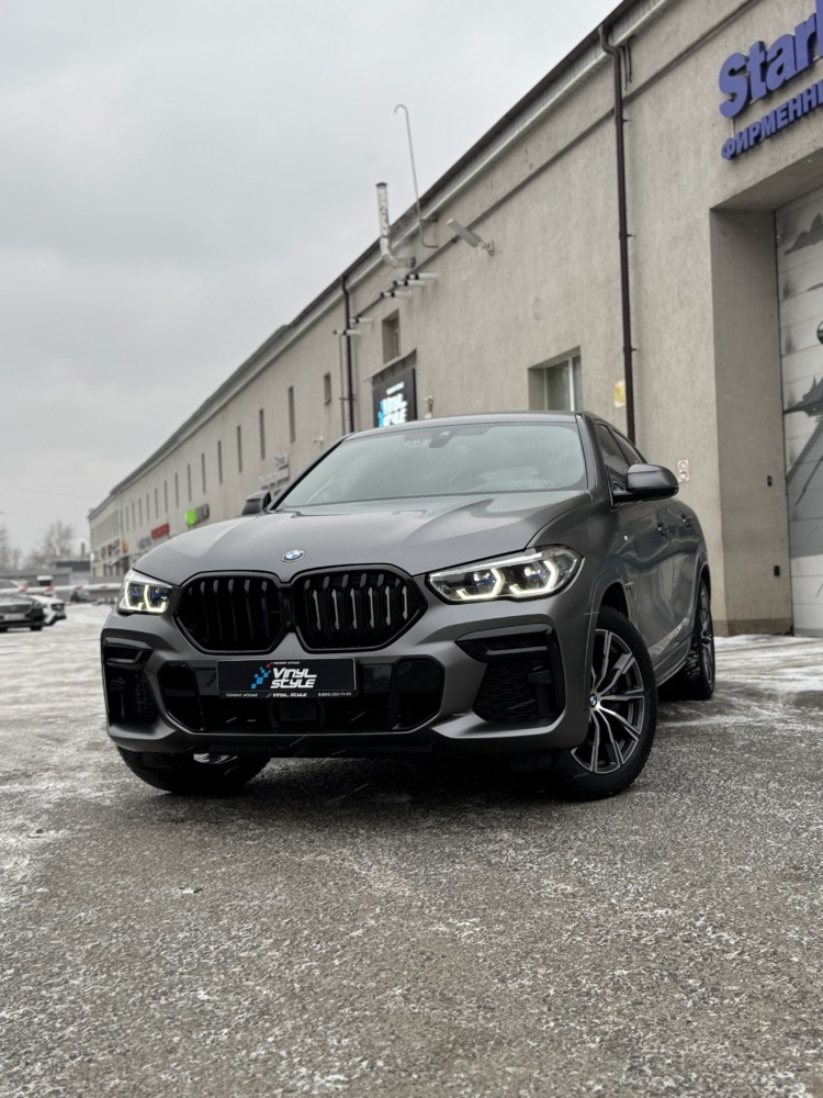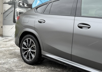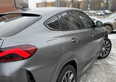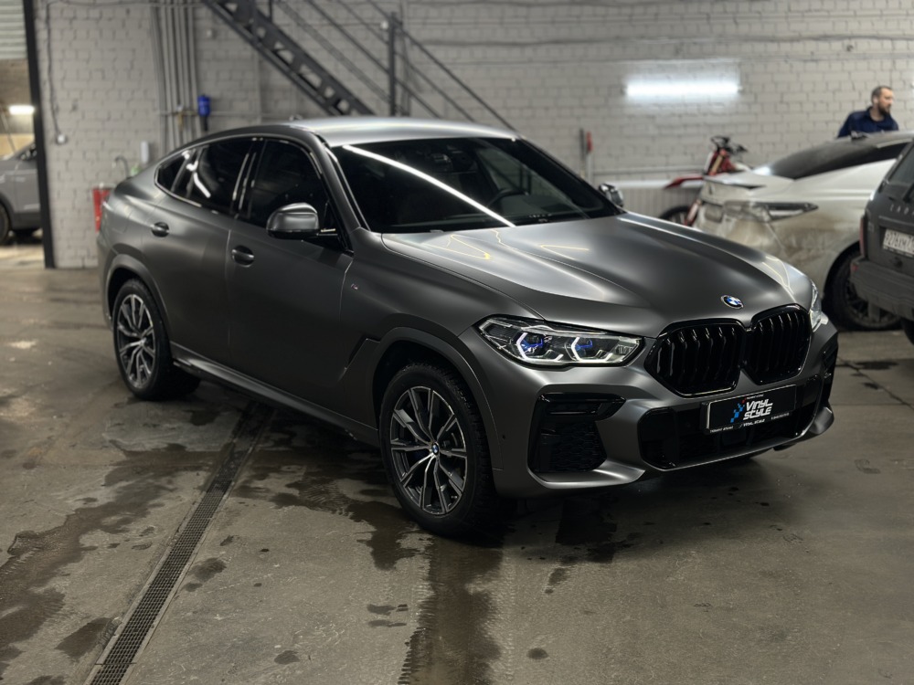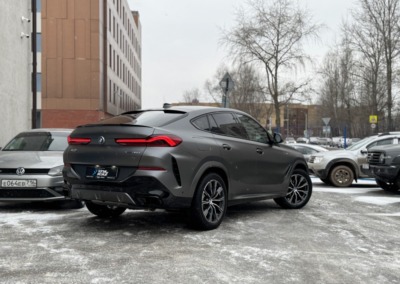 Смена цвета BMW X6. Необычный оттенок плёнки моментально притягивает взгляды и одновременно защищает кузов от сколов, царапин и всей городской агрессии.