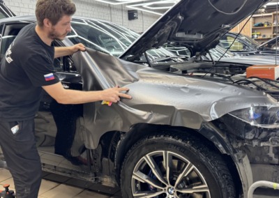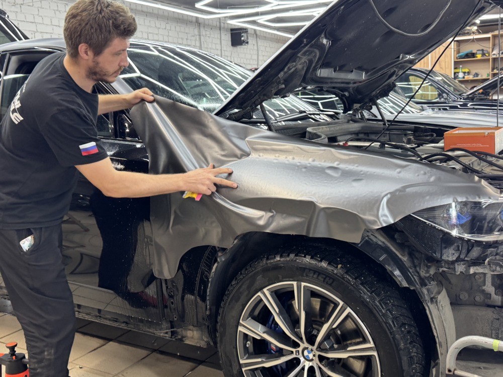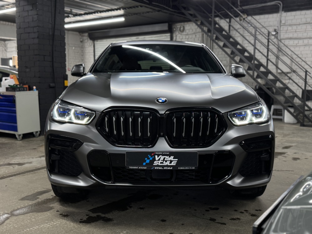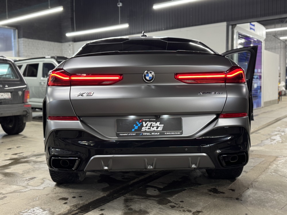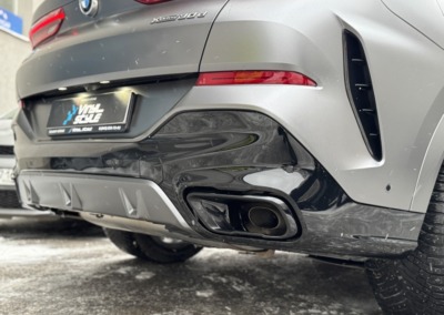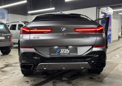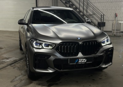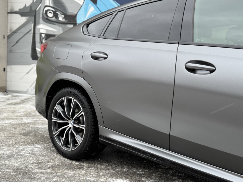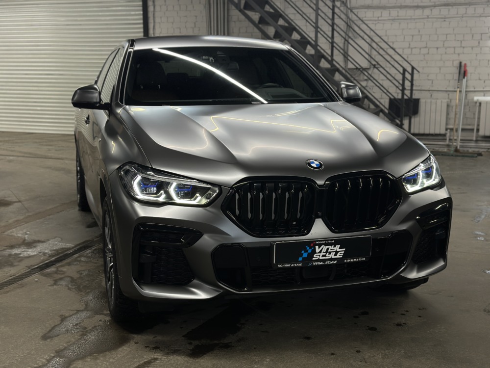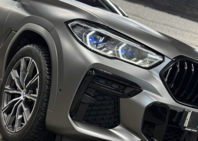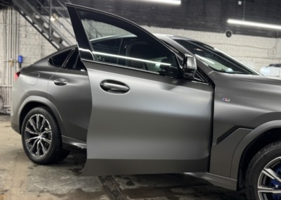 Смена цвета BMW X6. Необычный оттенок плёнки моментально притягивает взгляды и одновременно защищает кузов от сколов, царапин и всей городской агрессии.