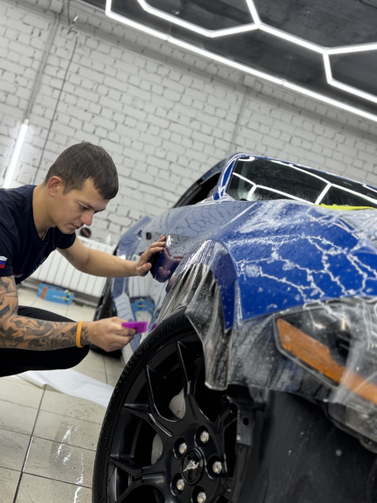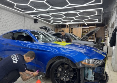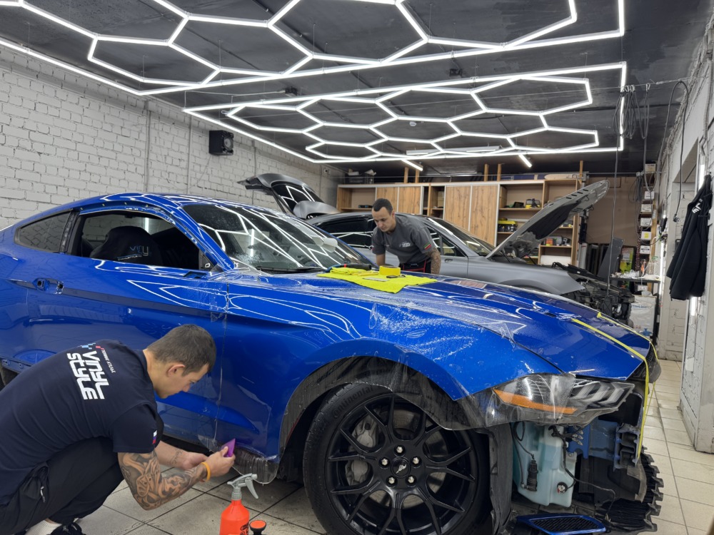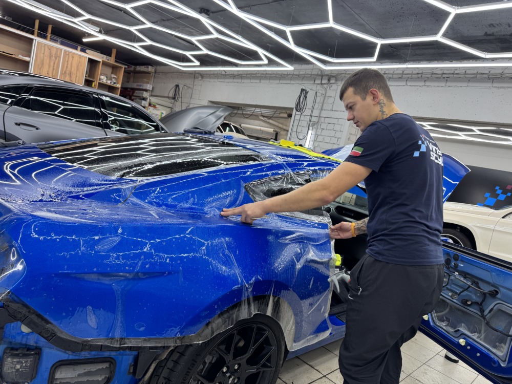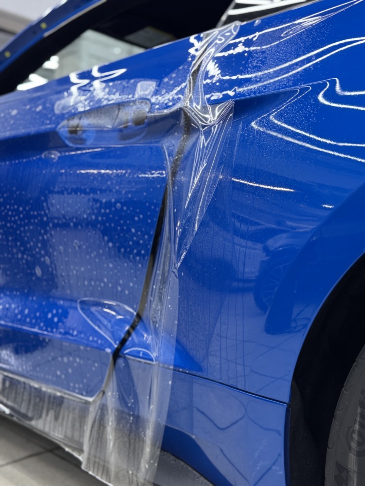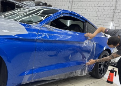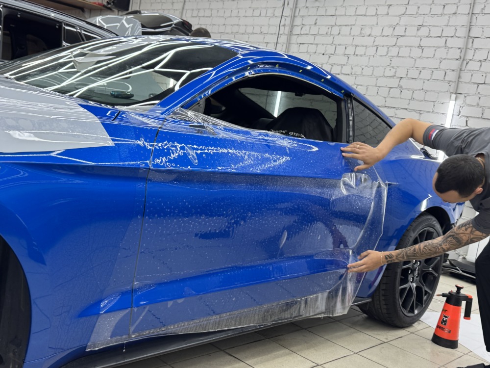 Оклейка Ford Mustang глянцевой полиуретановой плёнкой — отличное решение по защите кузова и сохранении внешнего вида автомобиля в идеальном состоянии на долгие годы!