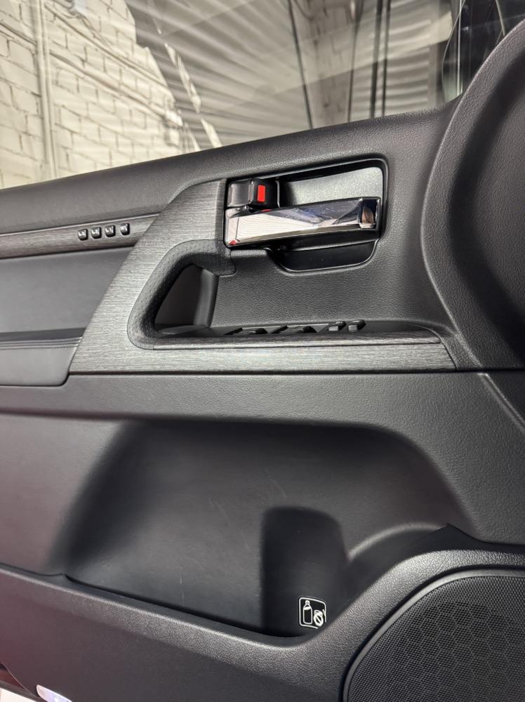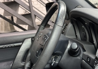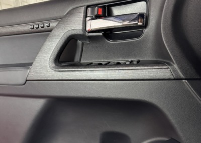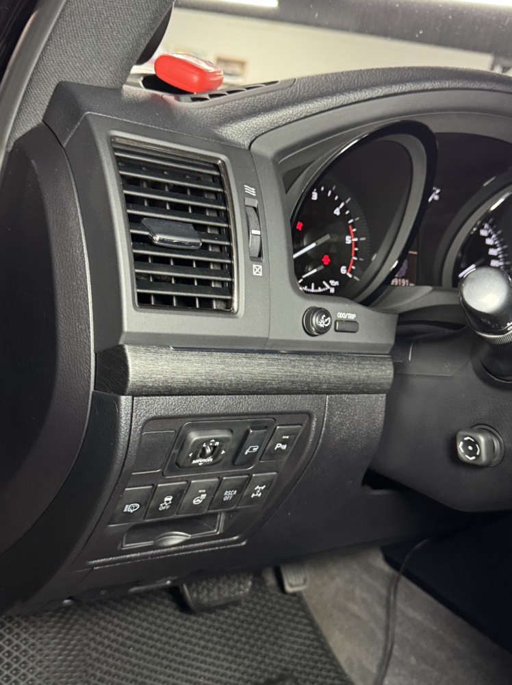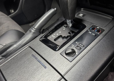 Ранее нами также был выполнен аквапринт деталей интерьера с текстурой «шлифованный алюминий», а также перетянуты руль и ручка КПП.