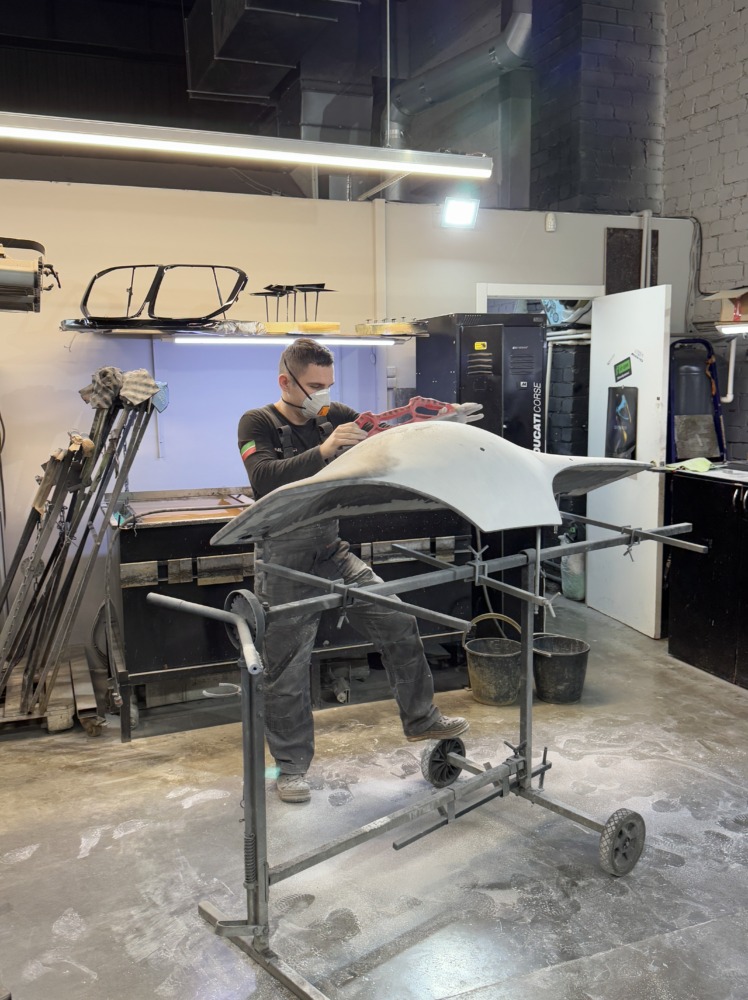 Также было отремонтировано и окрашено основание лежака — под оригинал, в чёрный глянец.