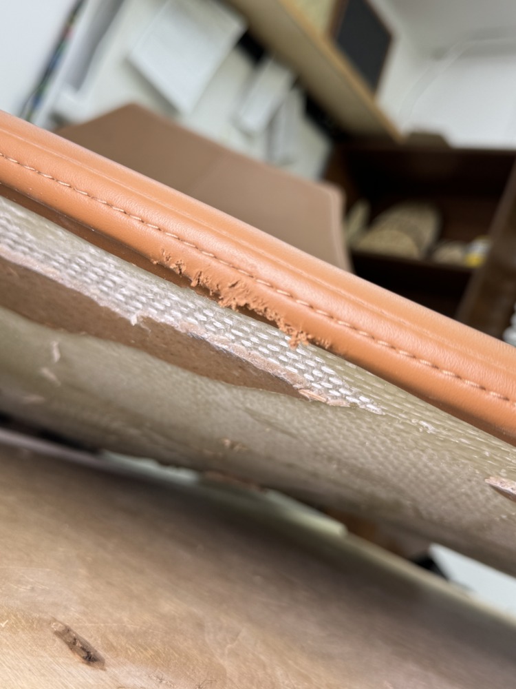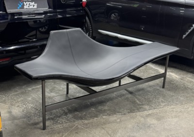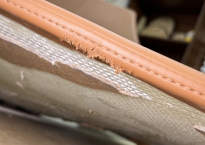 Череда необычных предметов, которые нам привозят на перетяжку, продолжается. В этот раз в работе был лежак. Со временем он изрядно износился и получил многочисленные повреждения.