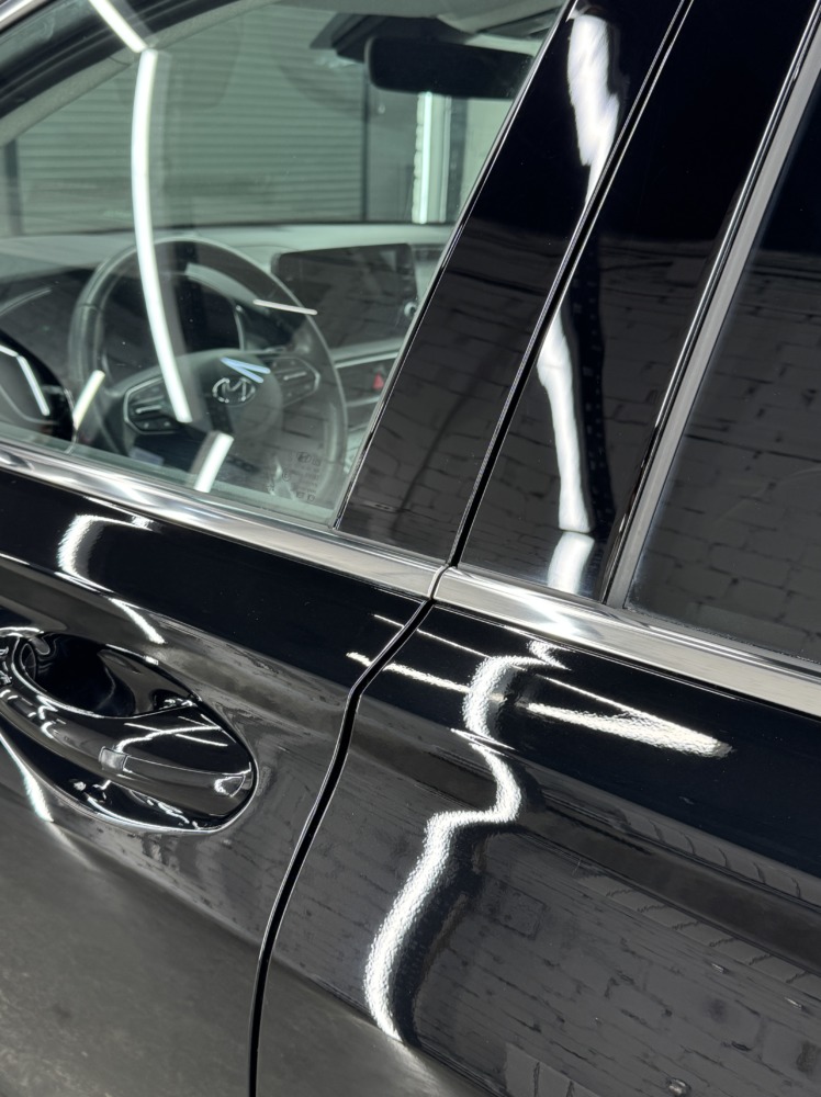 Сейчас этот Hyundai сияет, но совсем недавно на его лакокрасочное покрытие было грустно смотреть: просто огромное количество царапин, из-за которых вместо насыщенного чёрного он казался серым.