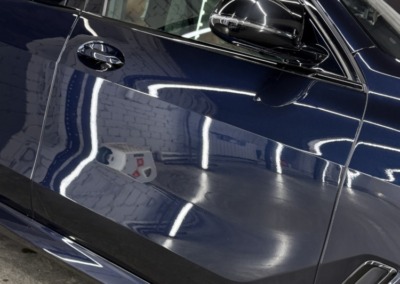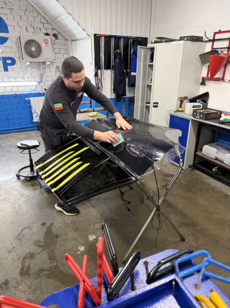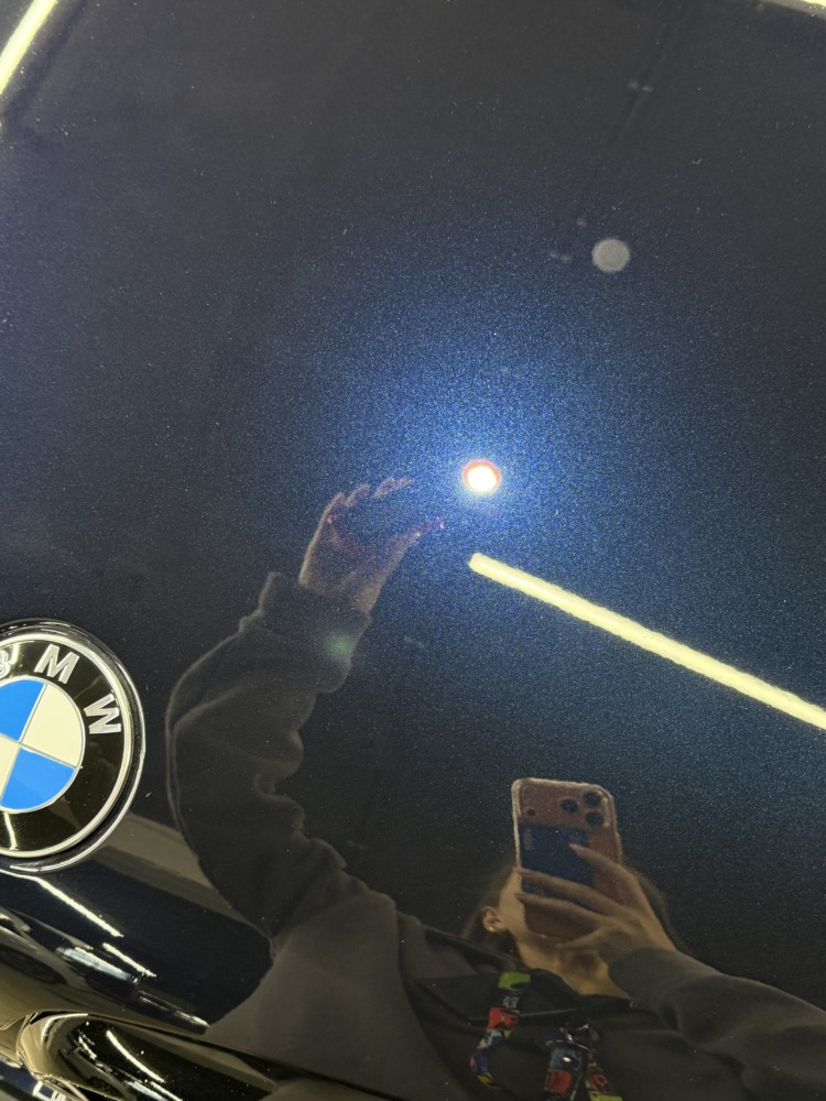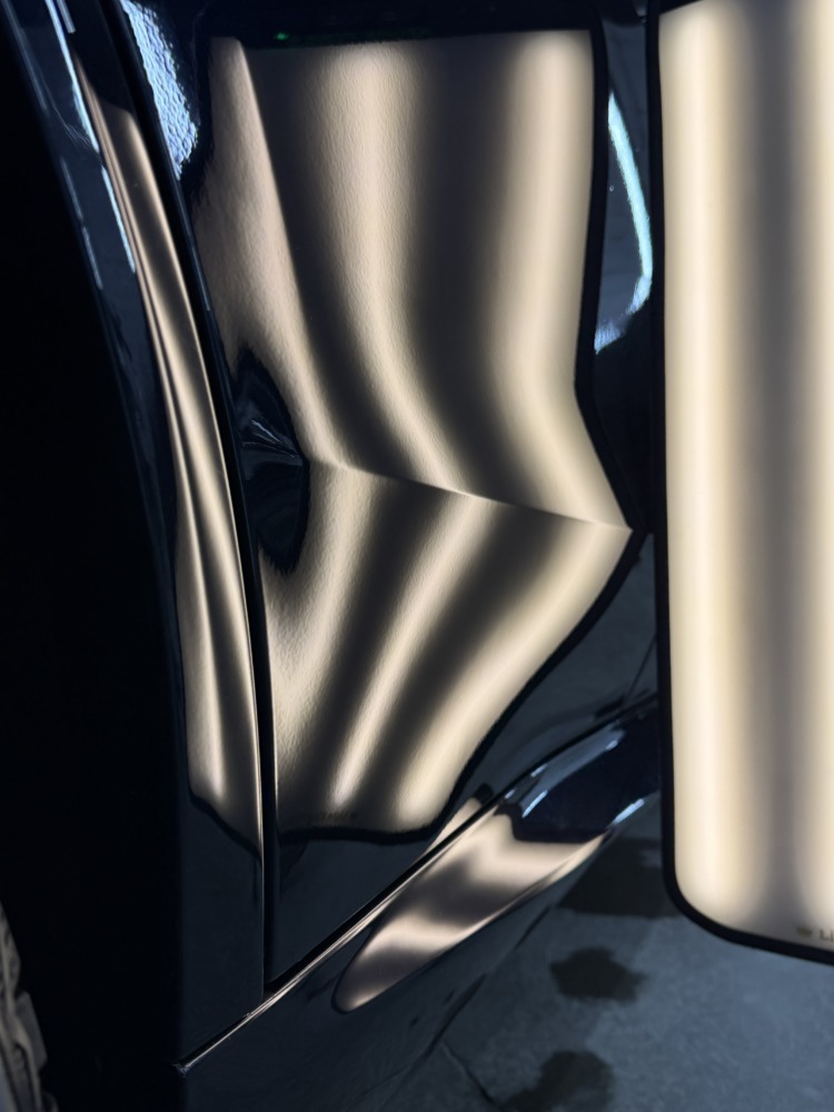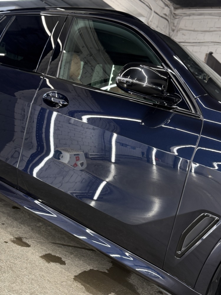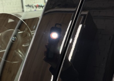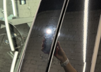 А пока проводились ремонтные работы, защитную плёнку решили освежить — автомобиль полностью отполировали, вернув покрытию глубину цвета и блеск.