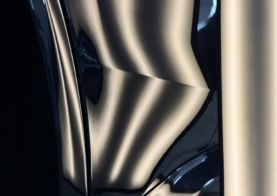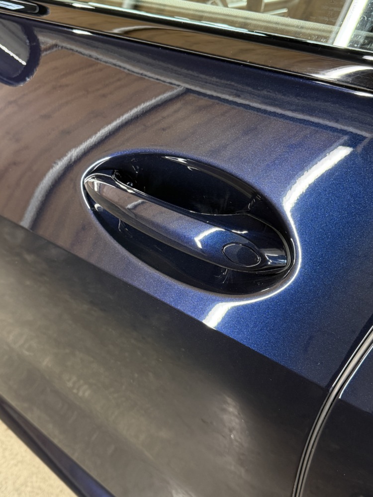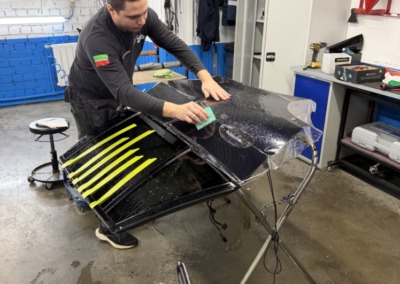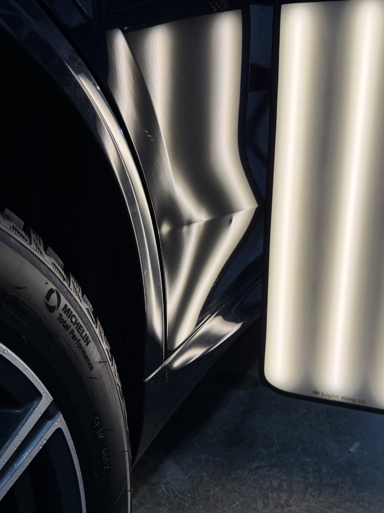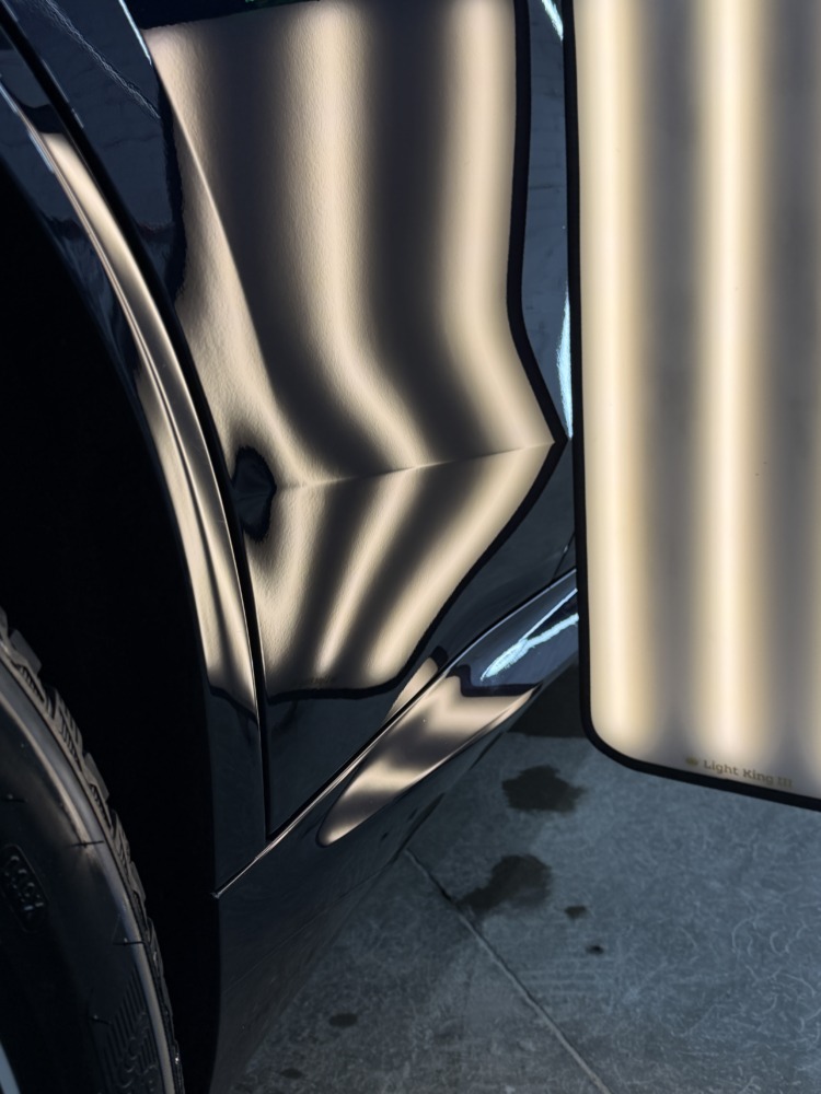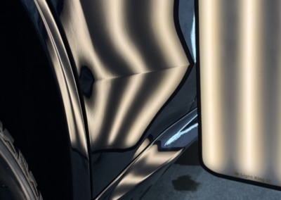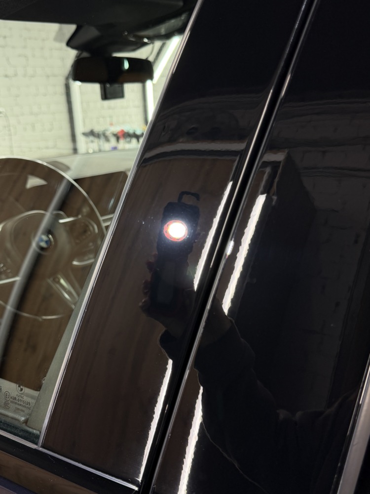А пока проводились ремонтные работы, защитную плёнку решили освежить — автомобиль полностью отполировали, вернув покрытию глубину цвета и блеск.