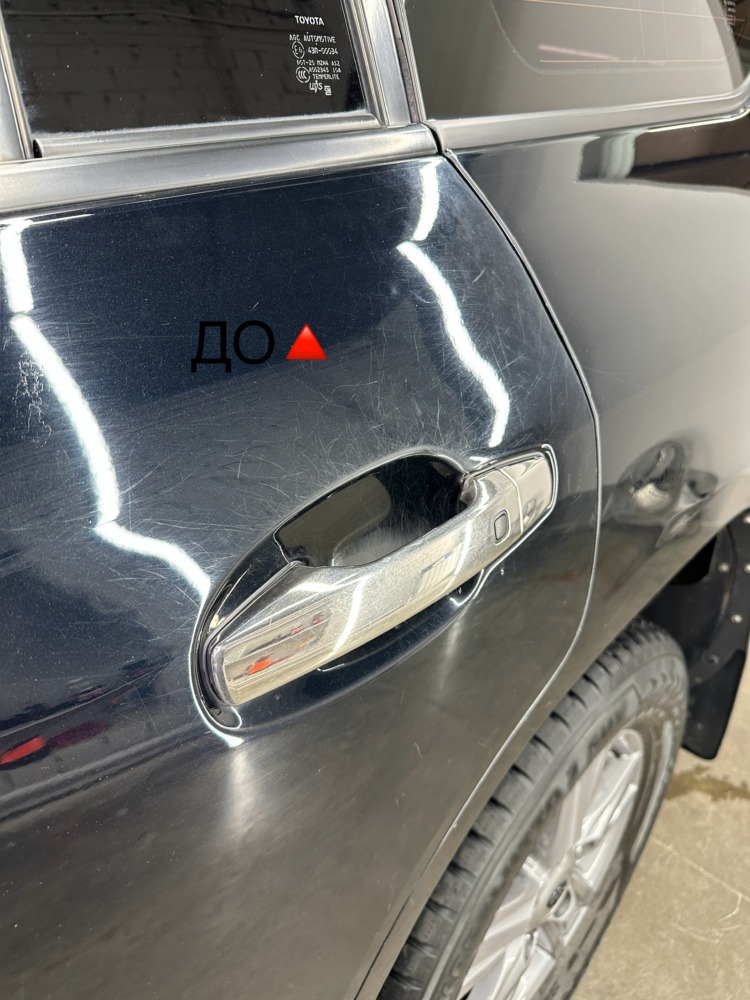 Полировка с нанесением керамики Toyota Land Cruiser 200. Многочисленные царапины и тусклый внешний вид портили общее впечатление от автомобиля.