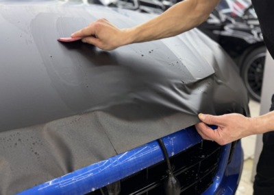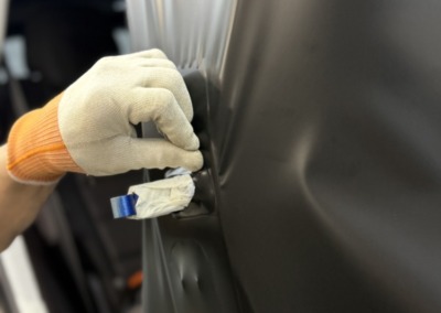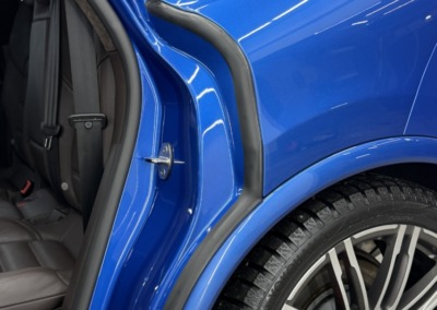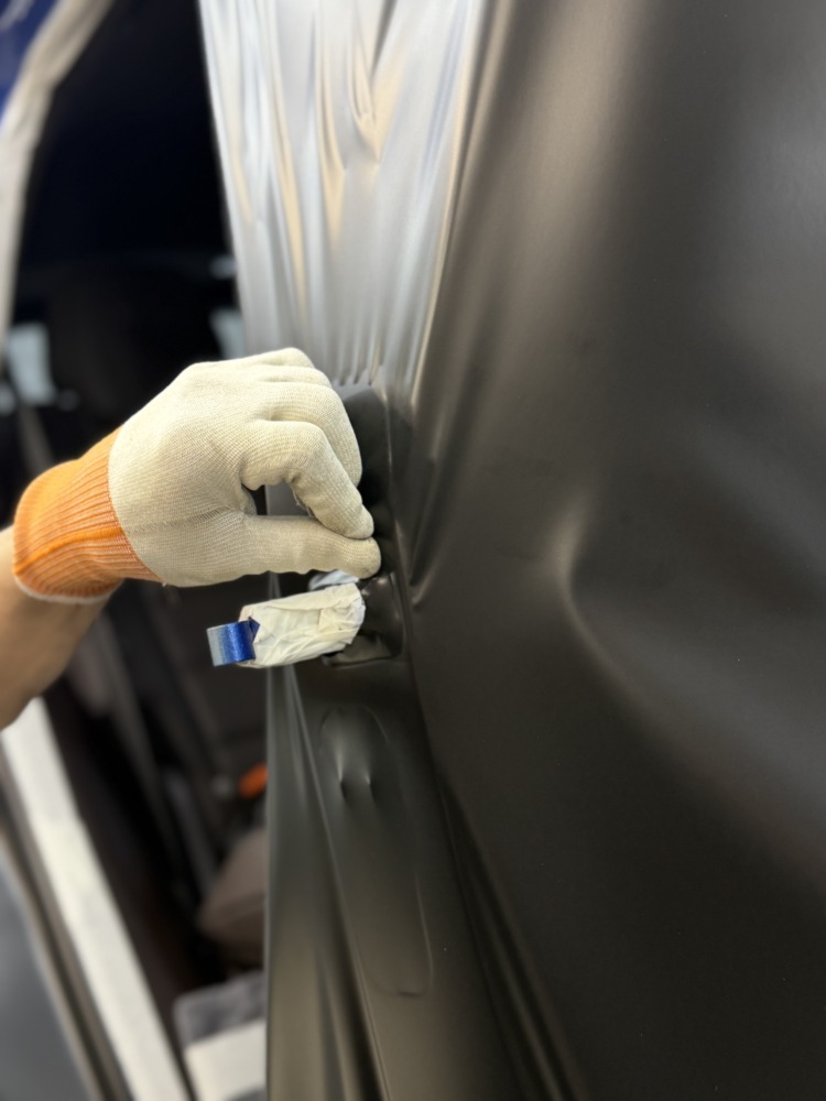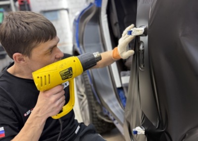 Главная особенность проекта — оклейка дверных проёмов. Это одна из самых сложных и технически требовательных работ: острые углы, сложная геометрия и неровности требуют большого опыта и точности. Многие студии за такое не берутся — для нас это показатель уровня.