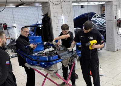 Автомобиль сменил насыщенный синий цвет на чёрный мат с эффектными золотистыми металлическими переливами.