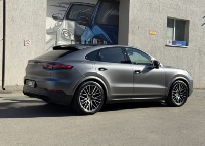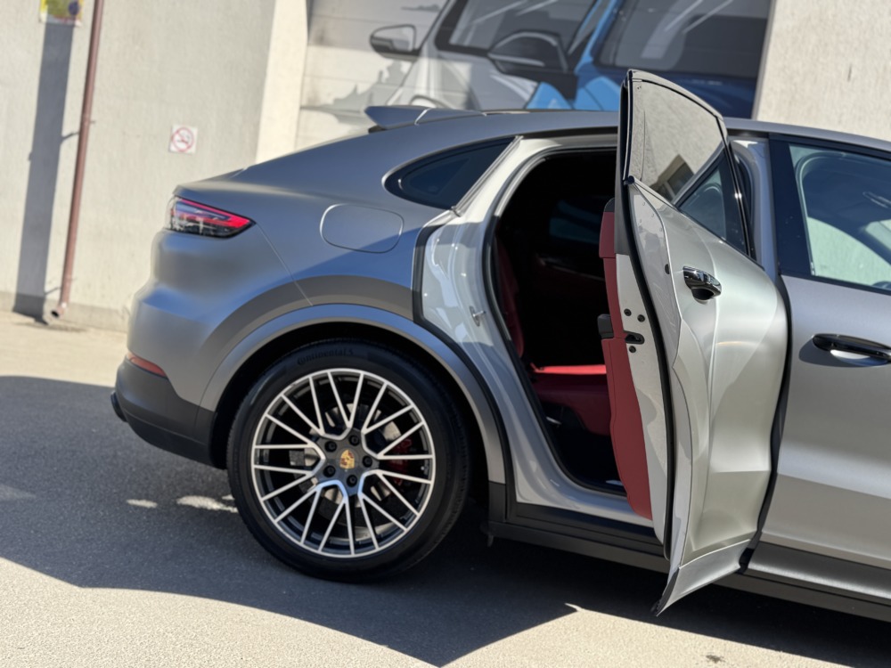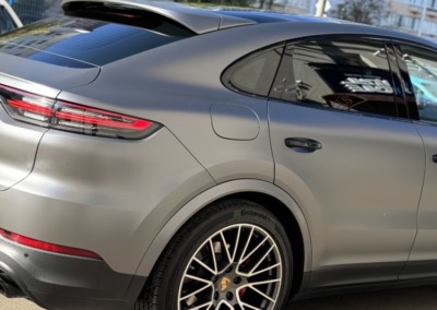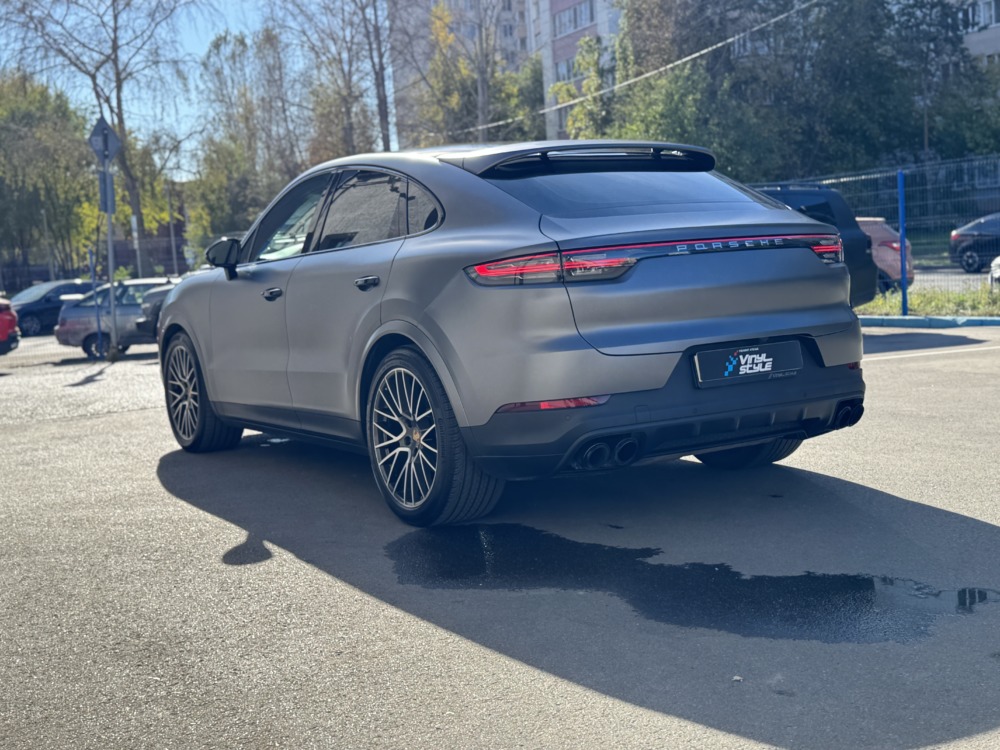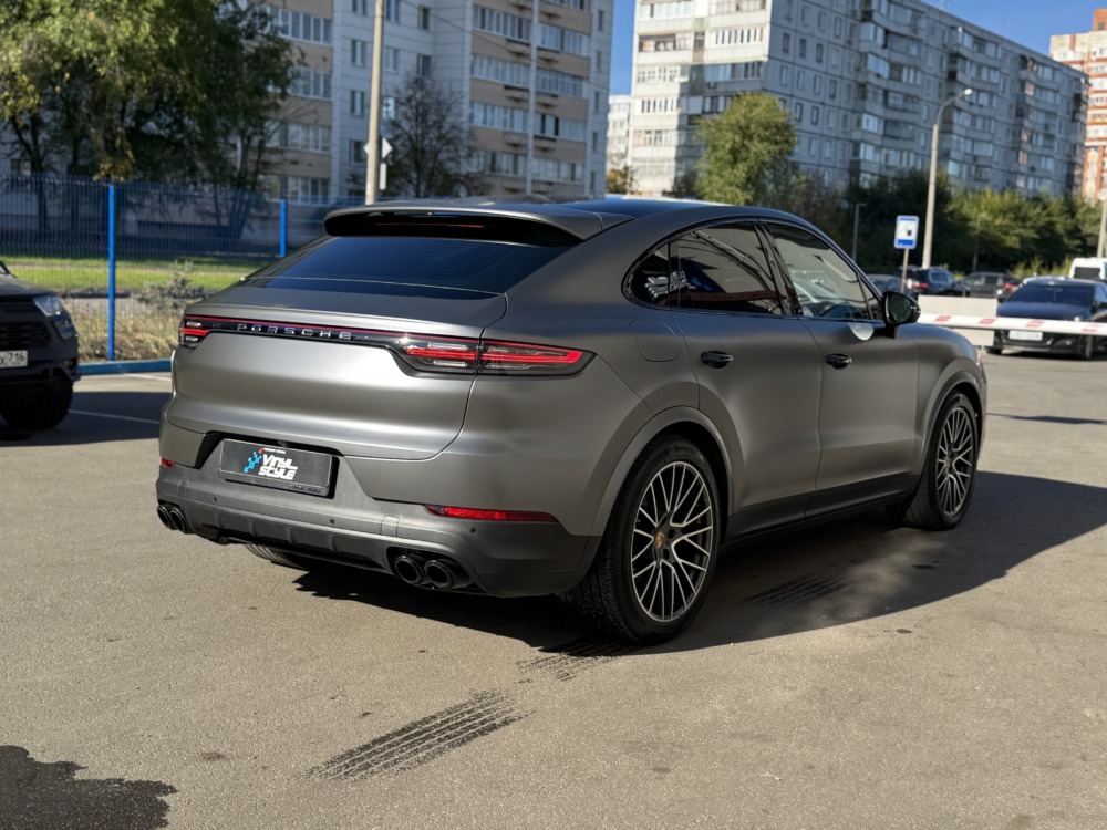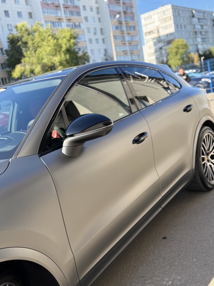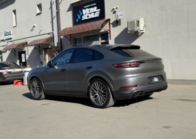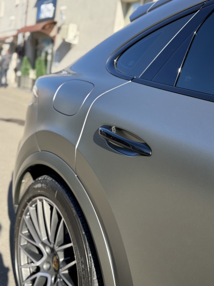 В очередной раз показываем как матовая текстура плёнки делает автомобиль визуально дороже. Этот Cayenne был оклеен нами в матовый полиуретан тёмно-серого цвета.