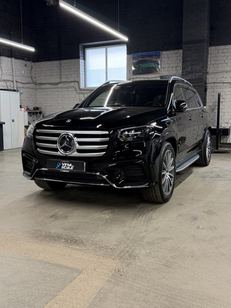 Кожаные не промокающие 3Д ковры с высокими бортами в комплекте с ворсовыми защитят заводской ковролин Mercedes GLS от влаги и грязи.