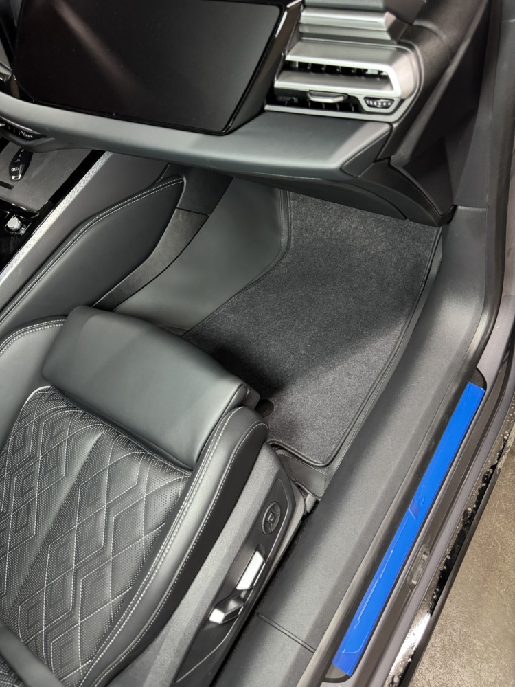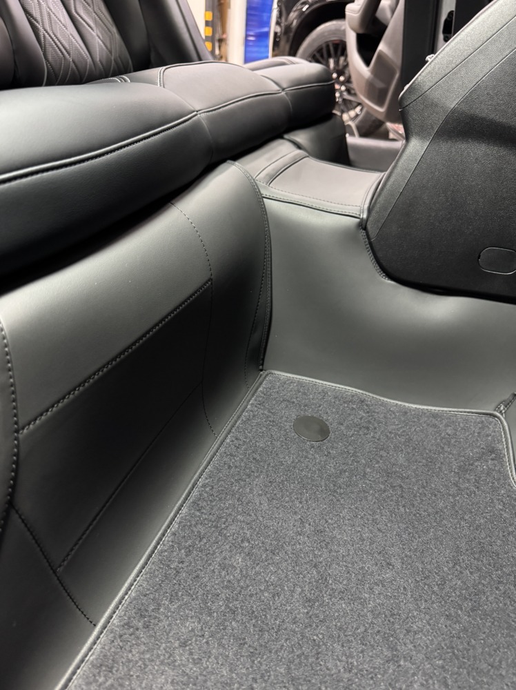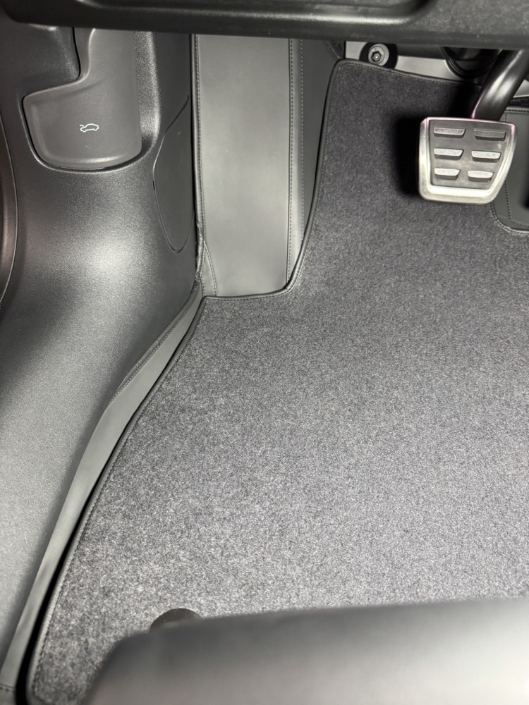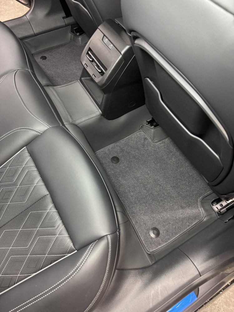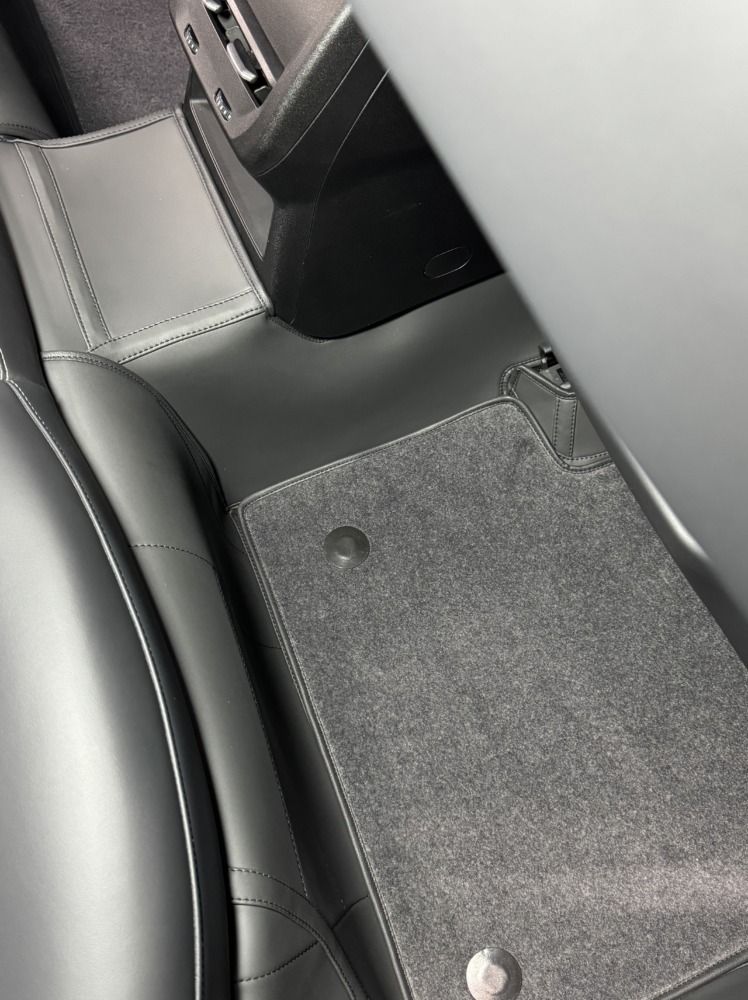 Сверху — серые ворсовые ковры, которые создают уют, подчеркивают премиальность интерьера и делают салон действительно комфортным.