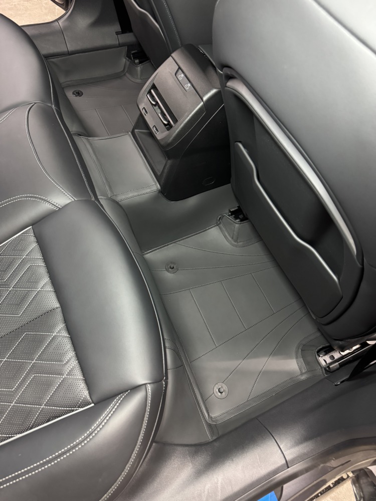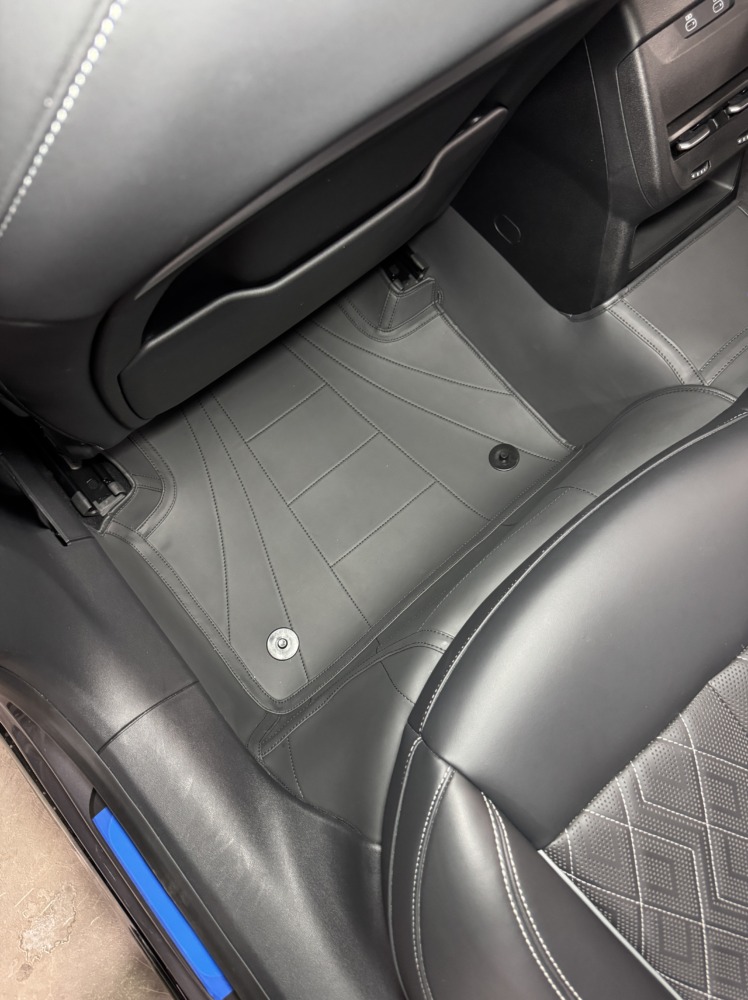3D-ковры из экокожи в оттенке антрацит с высокими бортами надёжно закрывают оригинальное напольное покрытие и защищают салон от влаги, грязи и реагентов.